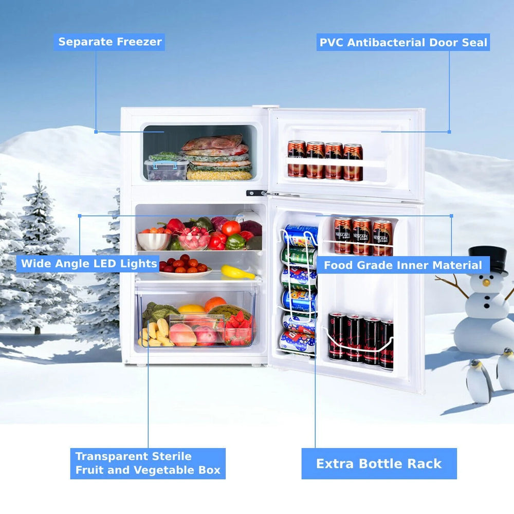 - Two separate compartments: 64L fridge space for fresh food and 26L freezer for frozen items, letting you store different food types without mixing odours.
