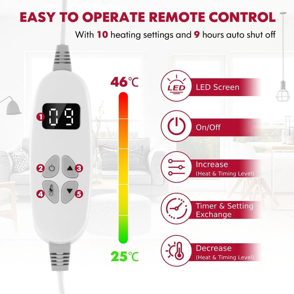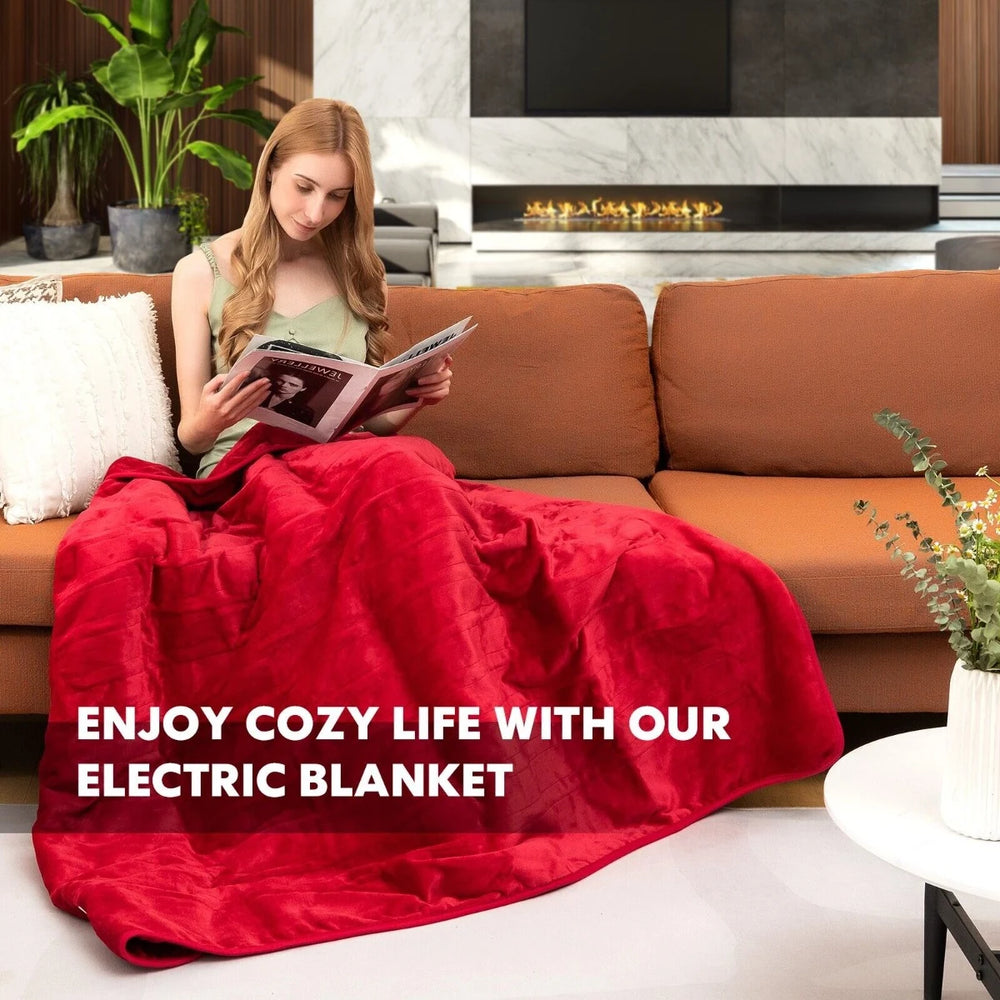 160 x 130 CM Electric Heated Throw Blanket with 10 Heat Settings-Red