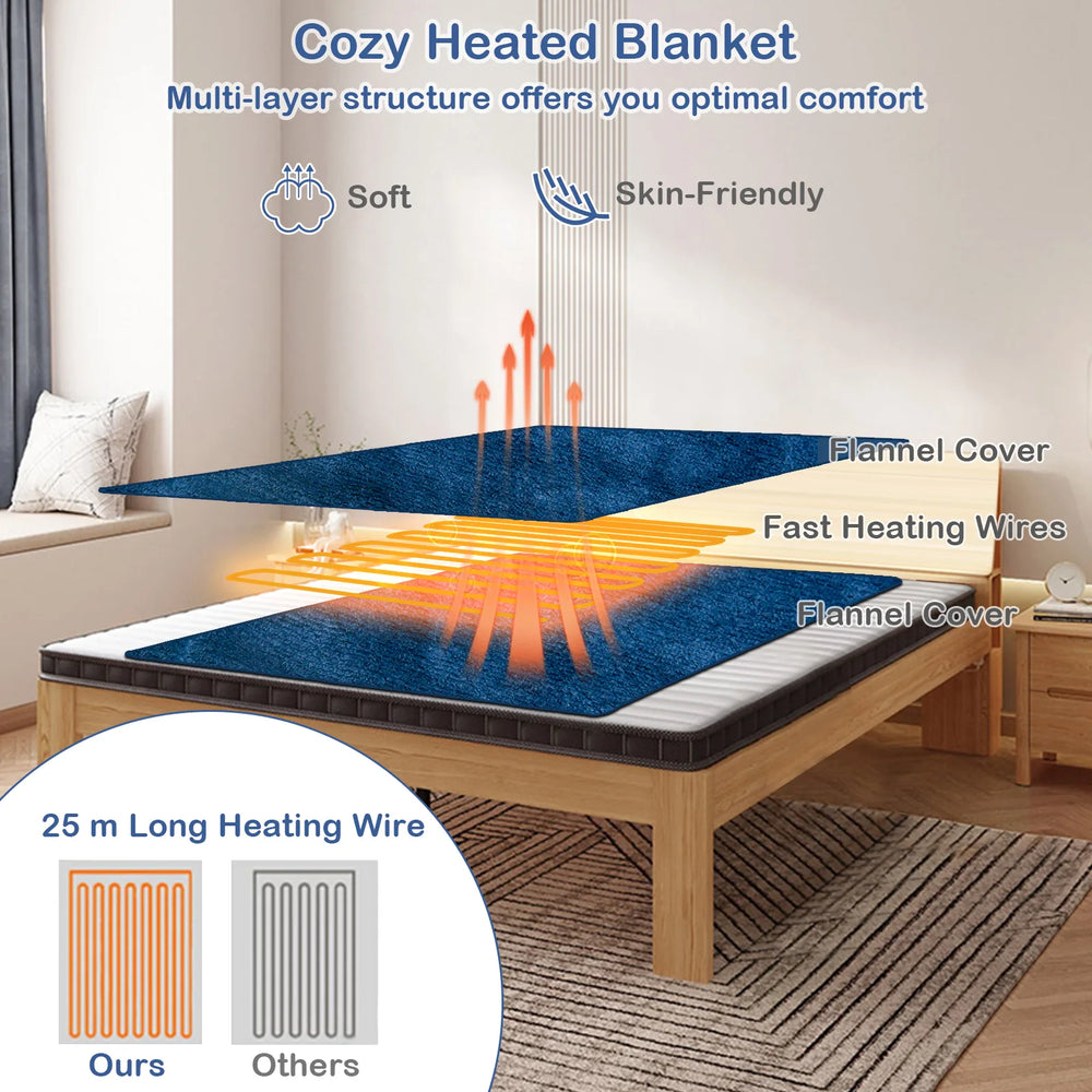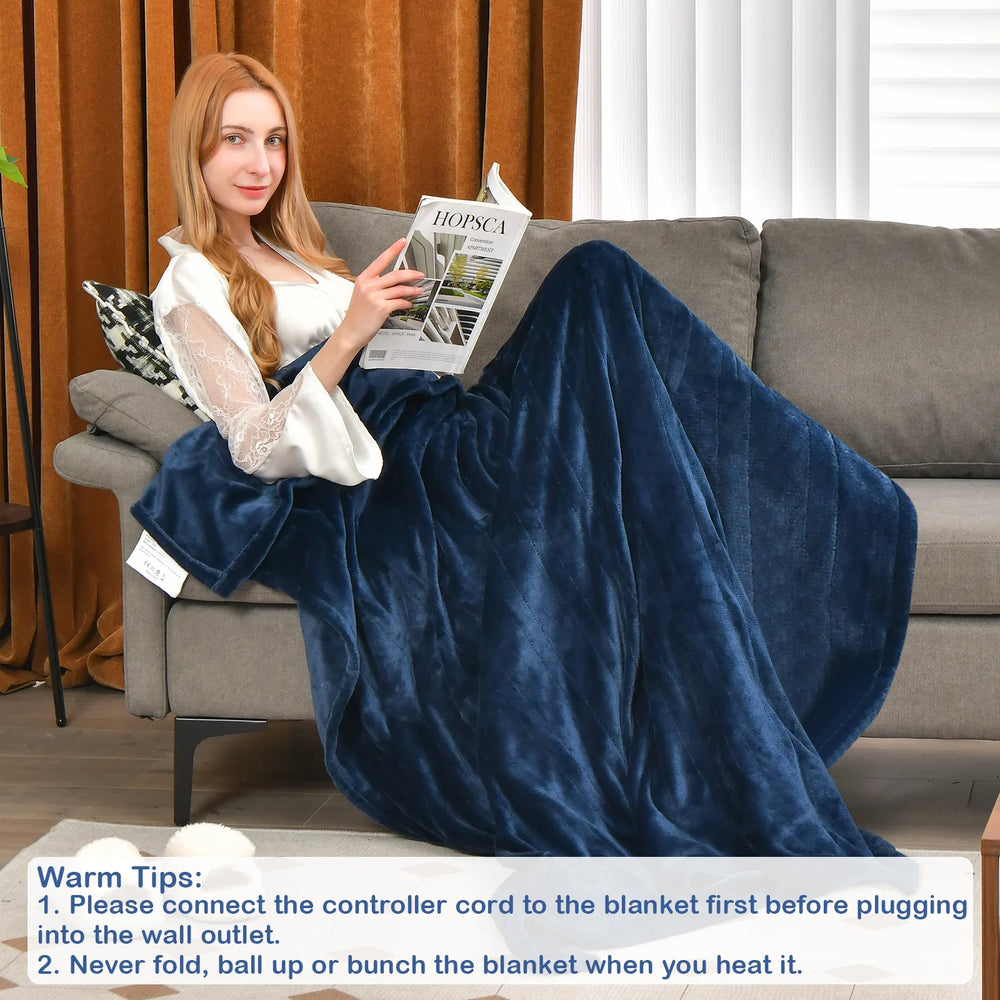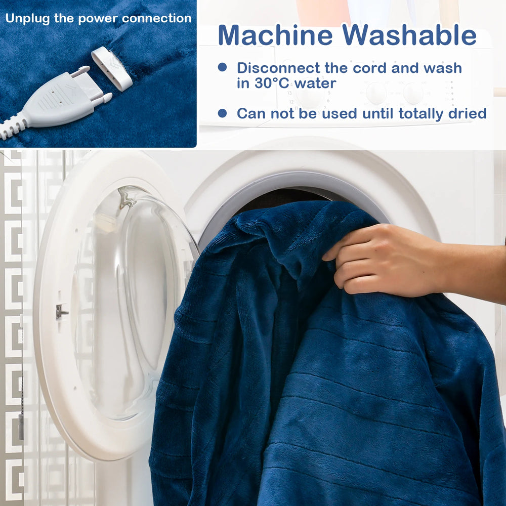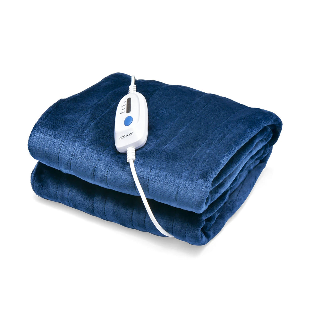 130 x 180 cm Electric Heated Blanket with 4 Heating Levels-Blue