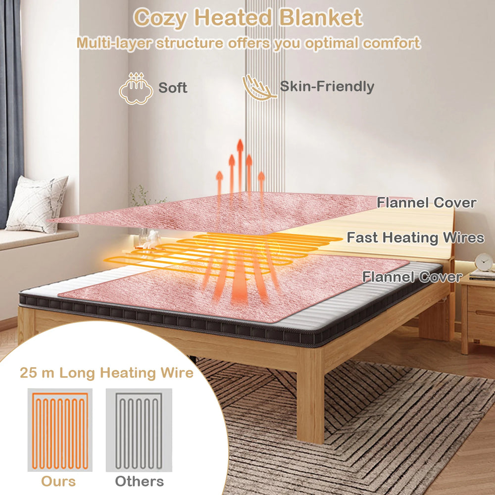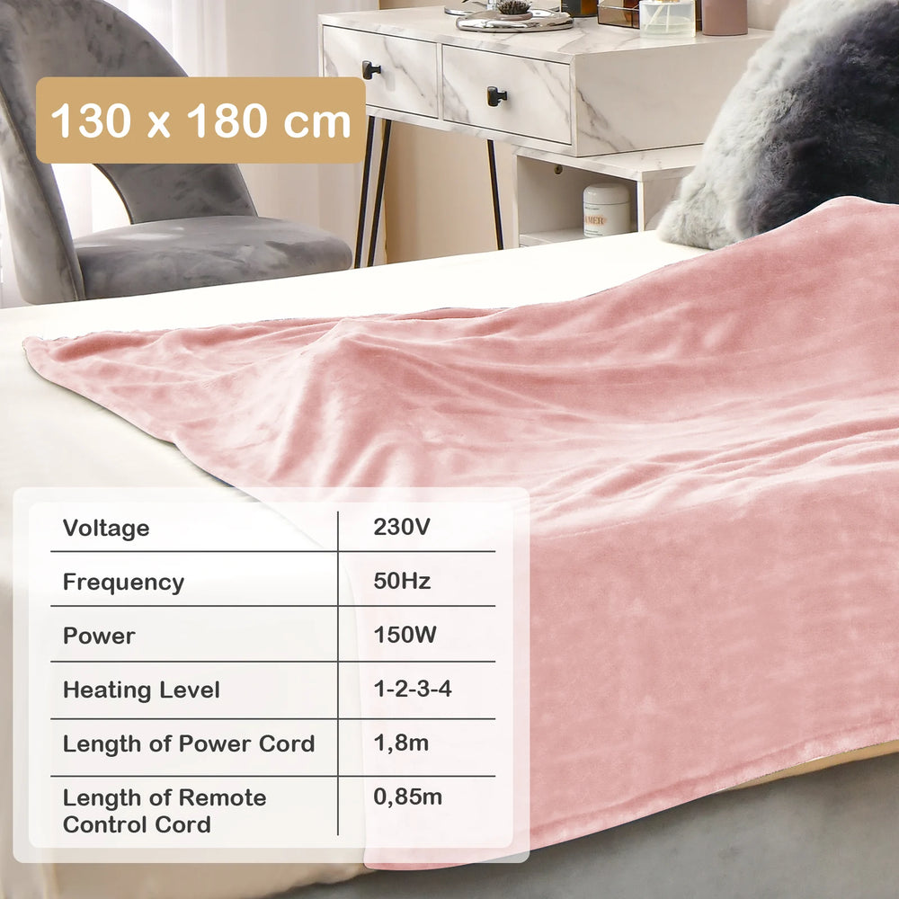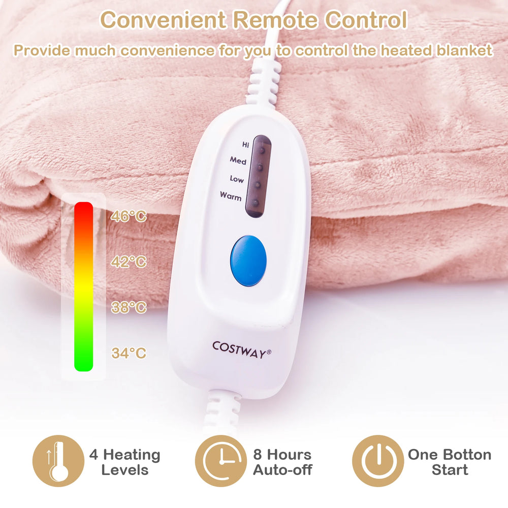 130 x 180 cm Electric Heated Blanket with 4 Heating Levels-Pink