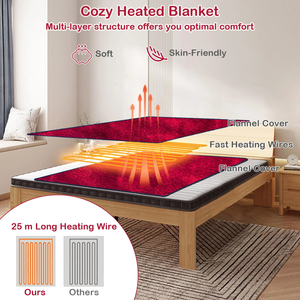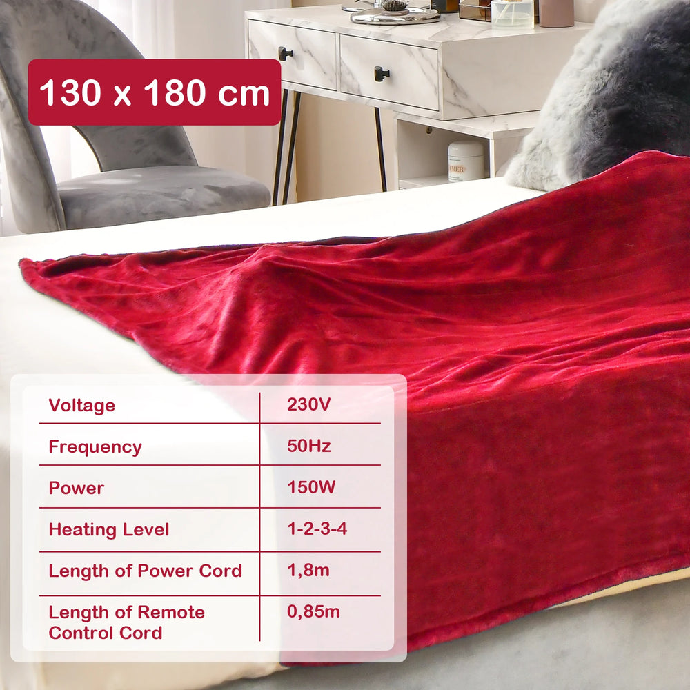 130 x 180 cm Electric Heated Blanket with 4 Heating Levels-Red