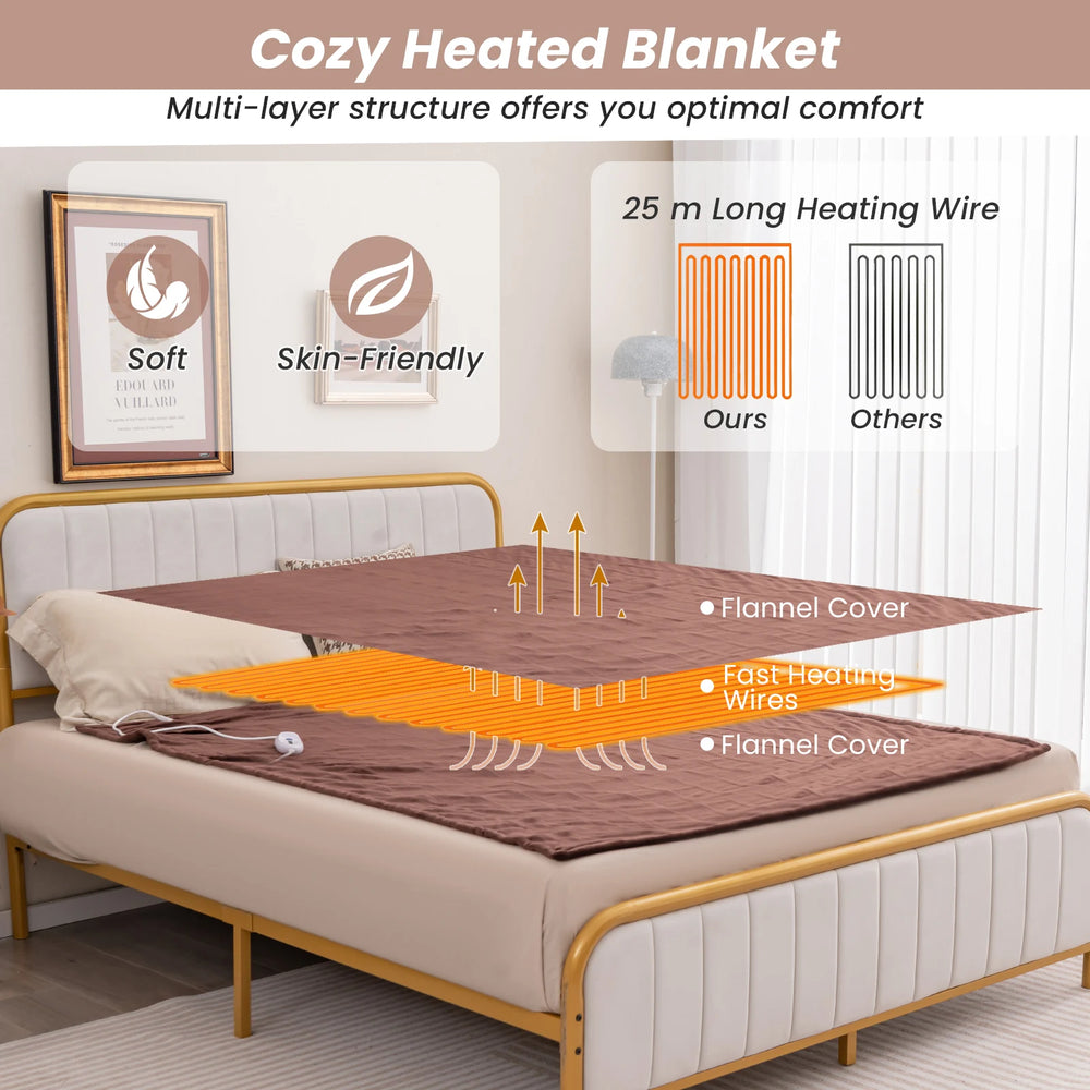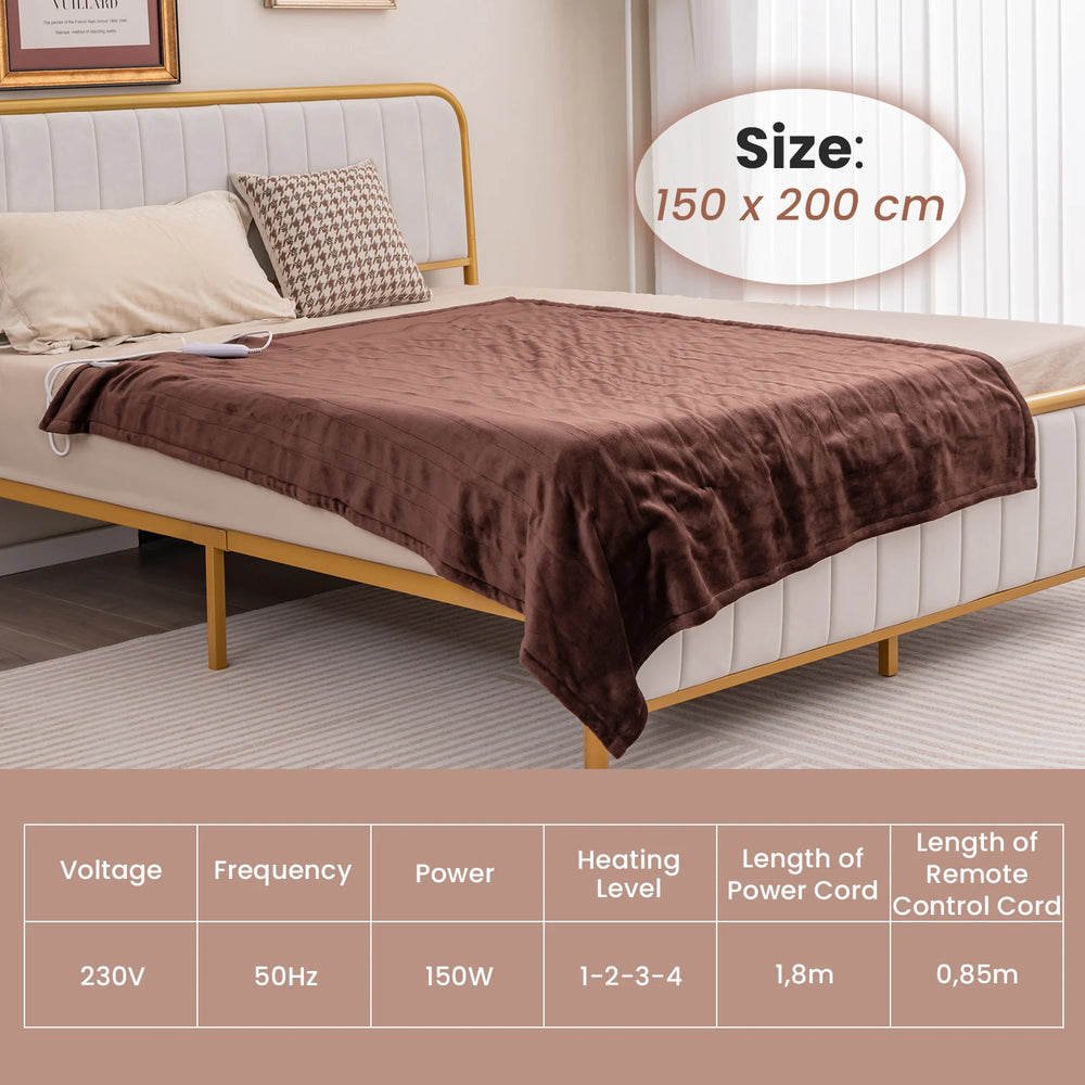 150 x 200 cm Electric Heated Blanket with 4 Heating Levels-Coffee