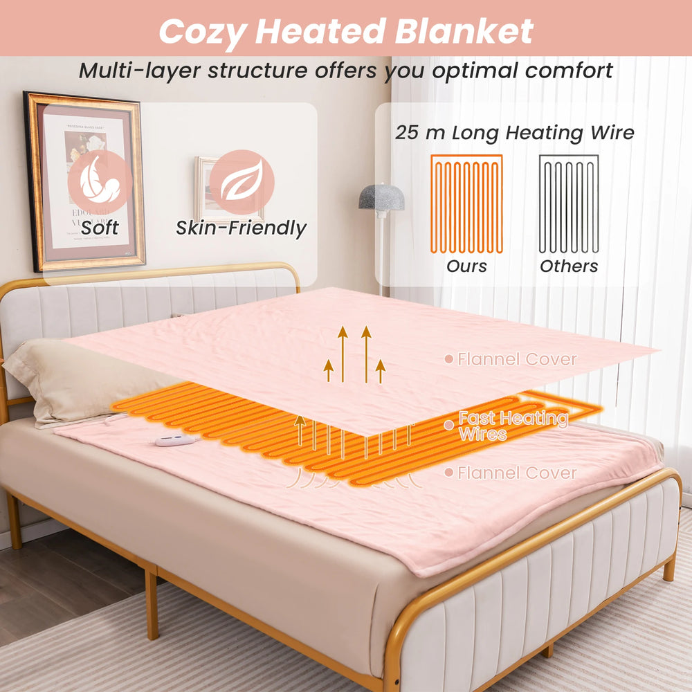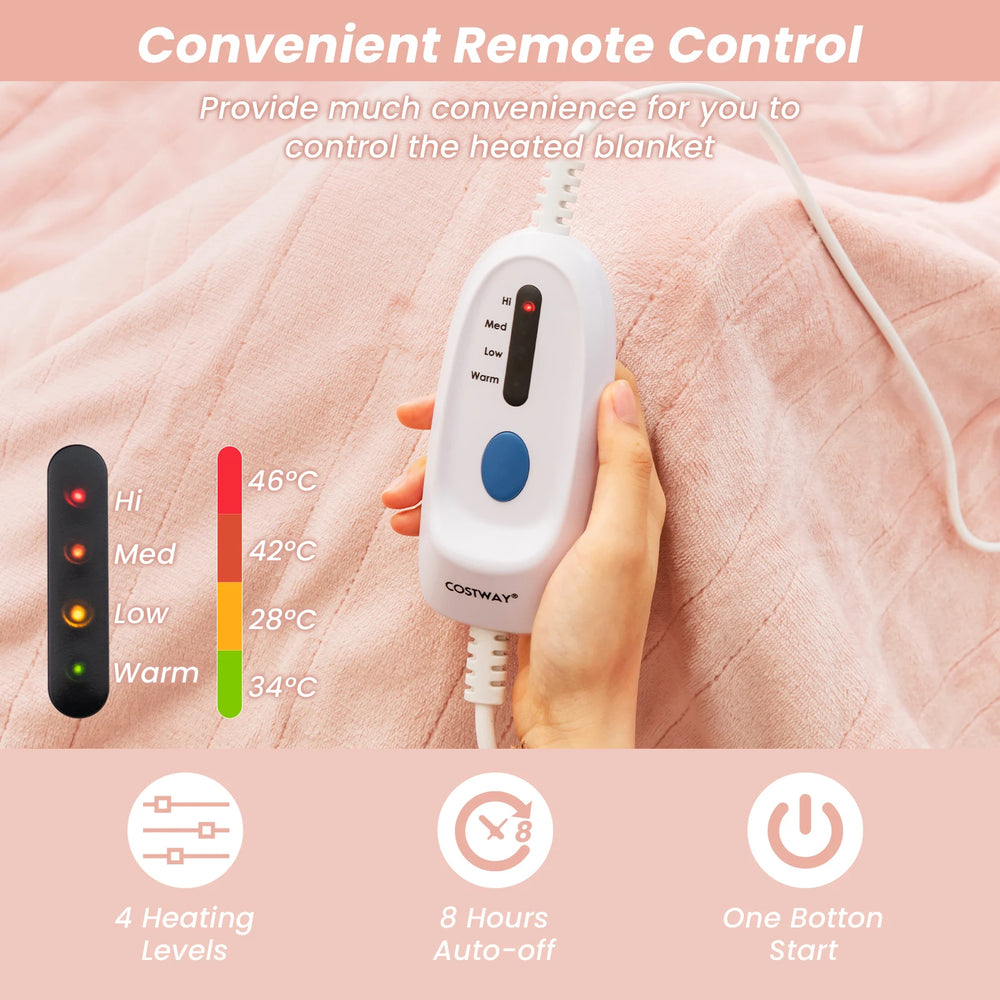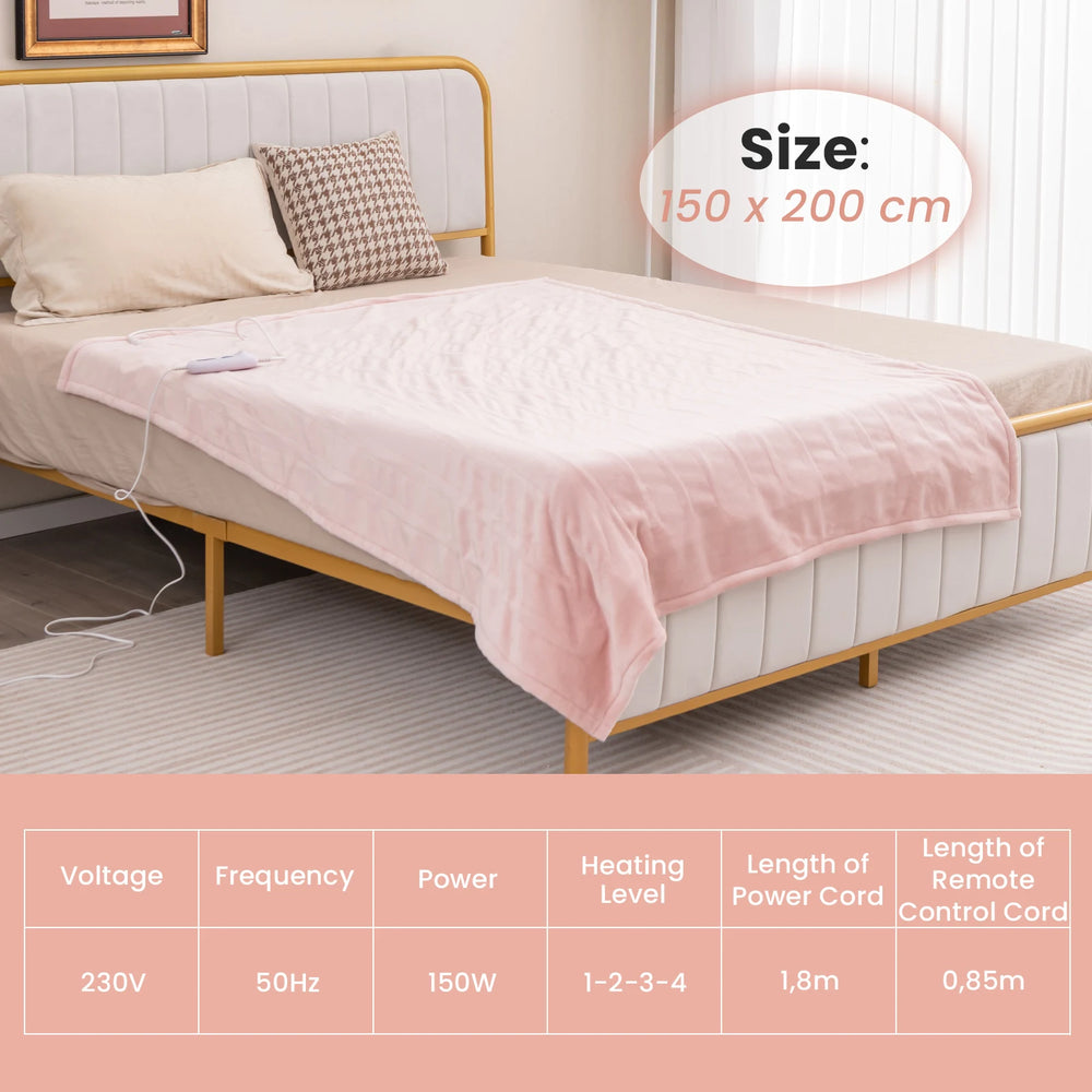 150 x 200 cm Electric Heated Blanket with 4 Heating Levels-Pink