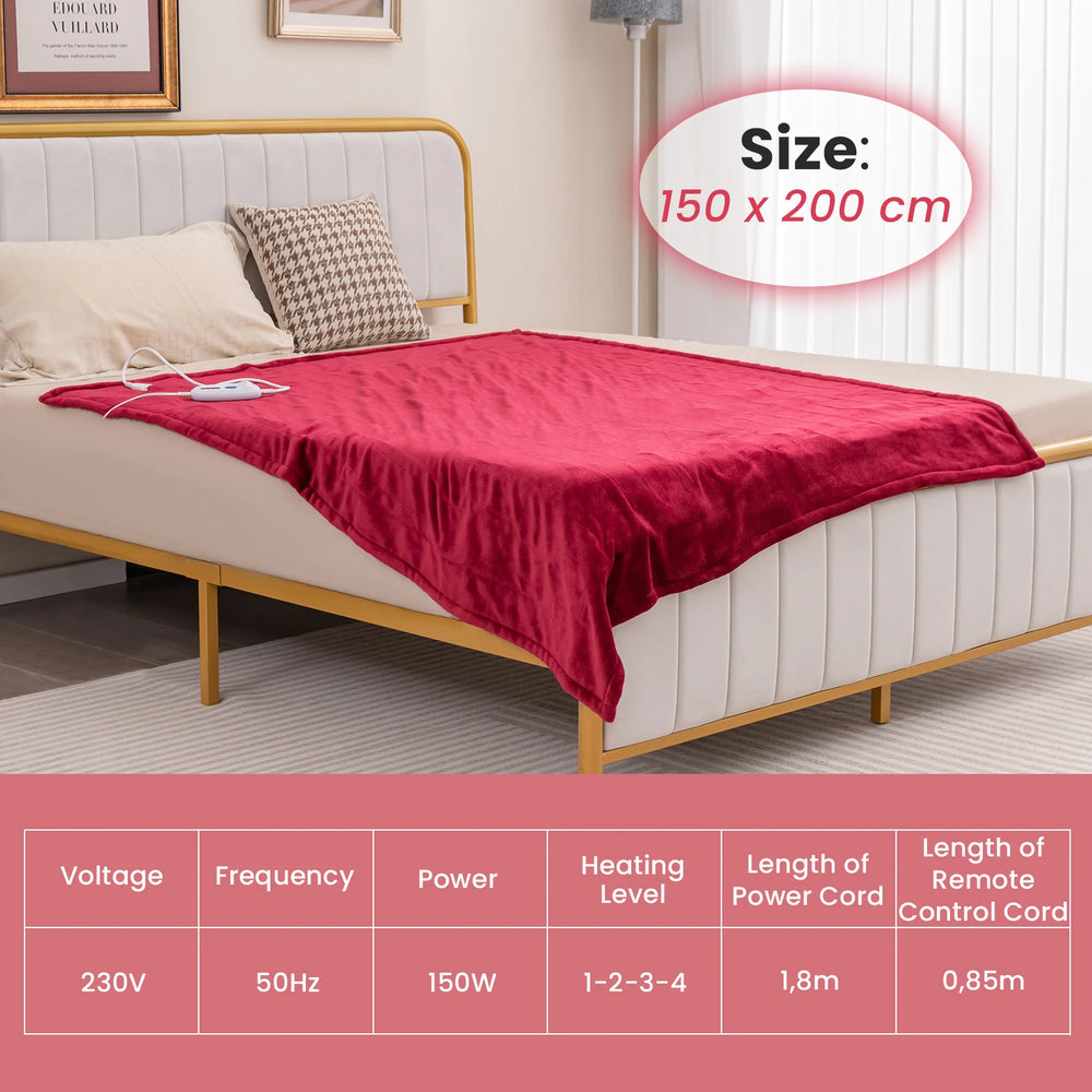 150 x 200 cm Electric Heated Blanket with 4 Heating Levels-Red