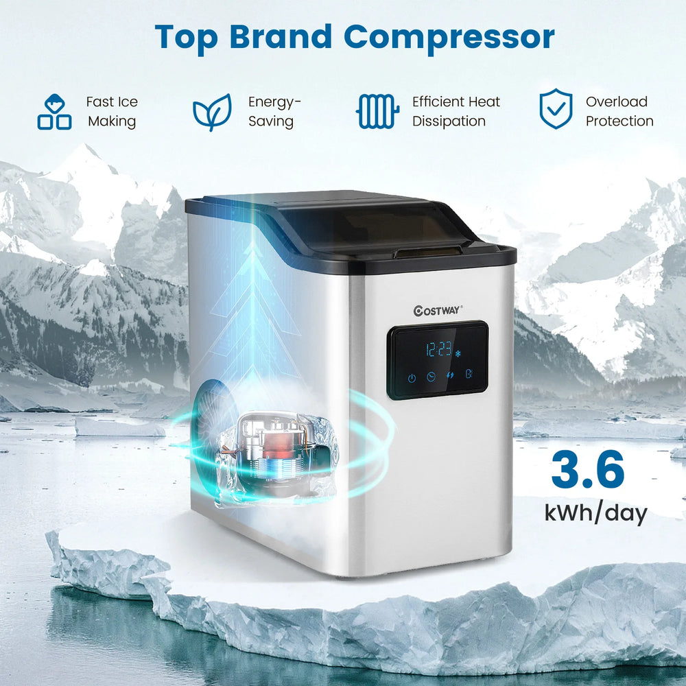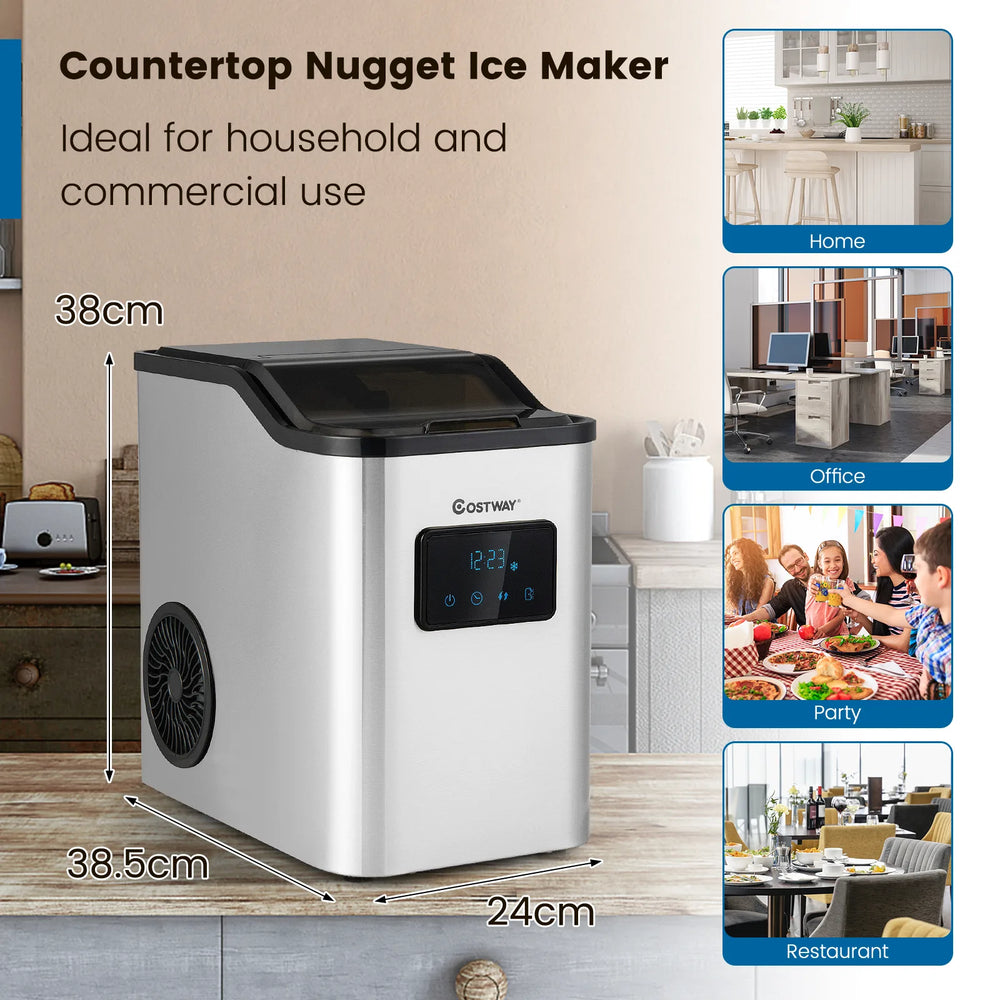 Countertop Nugget Ice Maker with 2 Ways Water Refill-Silver