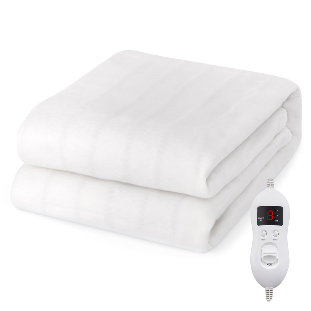 Colour: White Material: Polyester Voltage: 230V~ 50Hz Power Cord: 205 cm Single: Overall Dimensions: 190 x 90 cm (L x W) Controller: 1 Power: 60W Net Weight: 1.5 kg Double: Overall Dimensions: 190 x 135 cm (L x W) Controller: 1 Power: 110W Net Weight: 2 kg King: Overall Dimensions: 200 x 150 cm (L x W) Controller: 2 Power: 2 x 60W Net Weight: 3 kg Package Includes: 1 x Heated Mattress Pad 1 x Instruction Manual