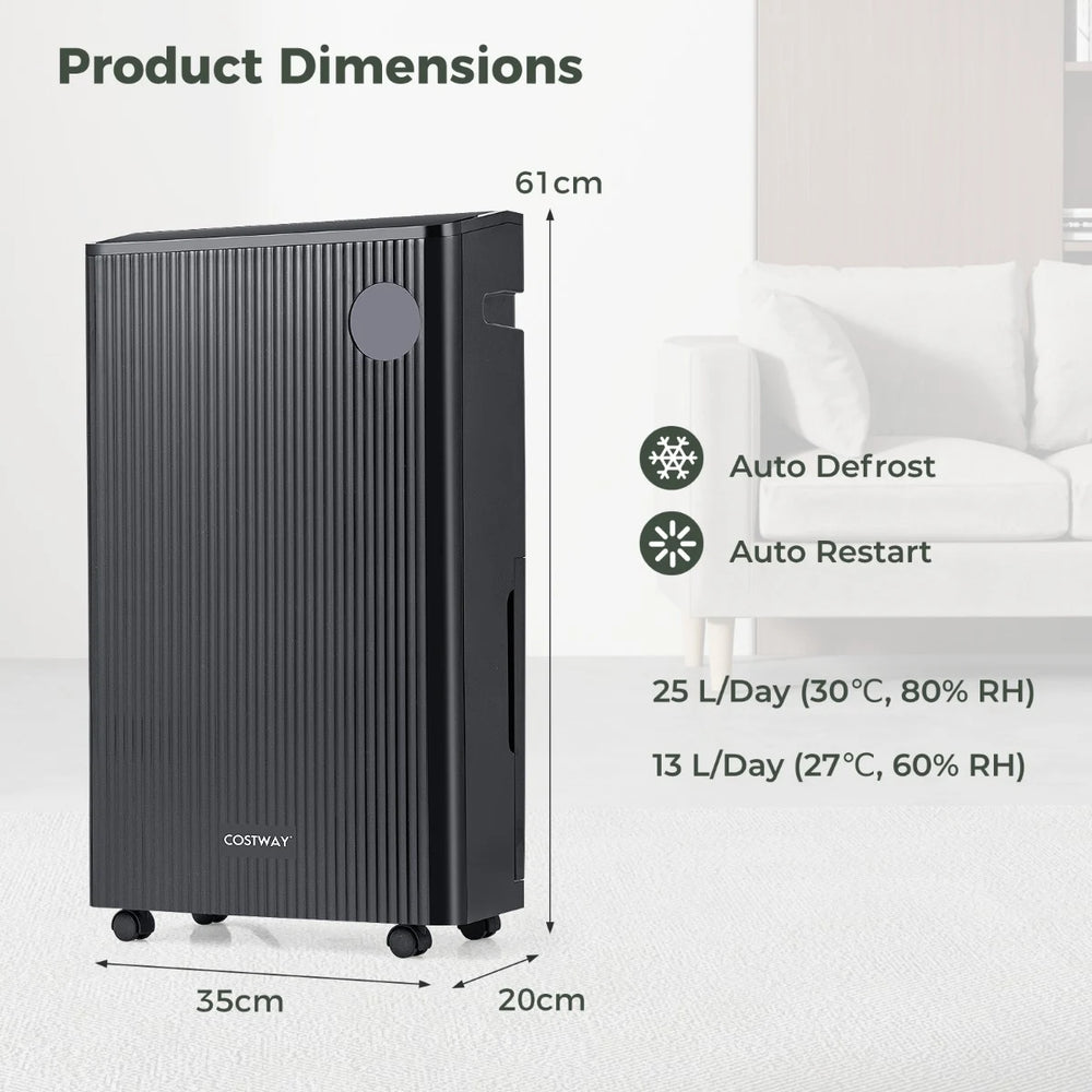 25L/D Dehumidifier for Home with 4 Modes 3-Color Indicator 24H Timer-Black