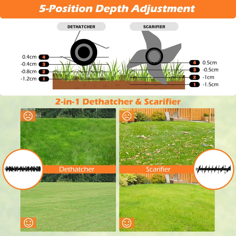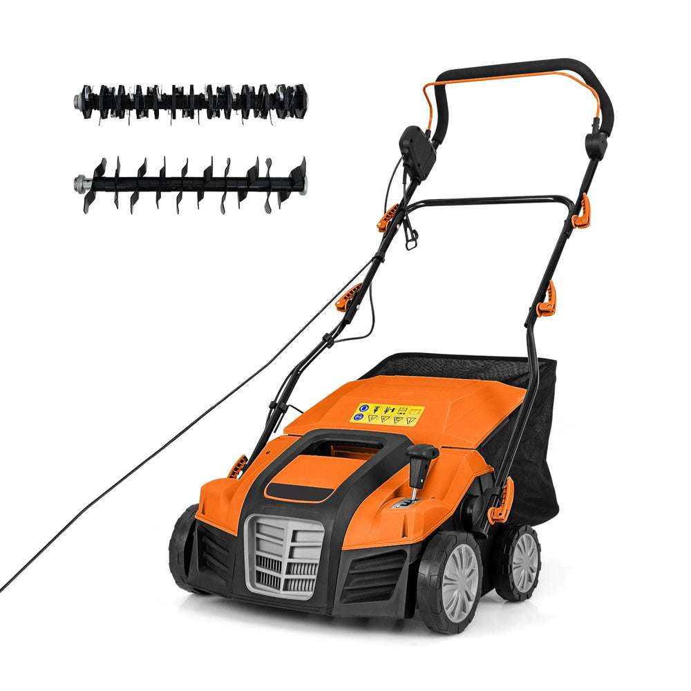Adjustable Electric Dethatcher and Scarifier Folding Walk-Behind Weeder-Orange