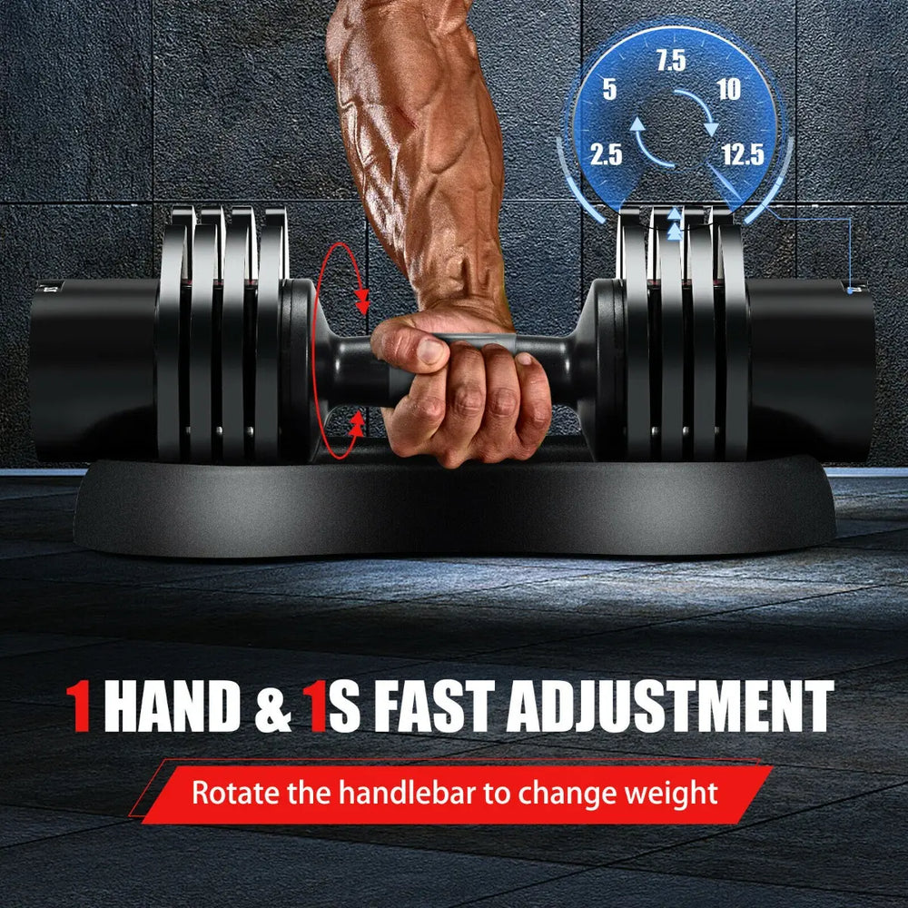 Colour: Black Material: Rubber + ABS + steel Overall dimension: 36 cm x 20 cm x 16 cm (L x W x H) Net weight: 13 kg Weight adjustment range: 2.5-12.5 kg Package includes: 1 x Adjustable dumbbell 1 x Dumbbell tray 1 x Instruction manual