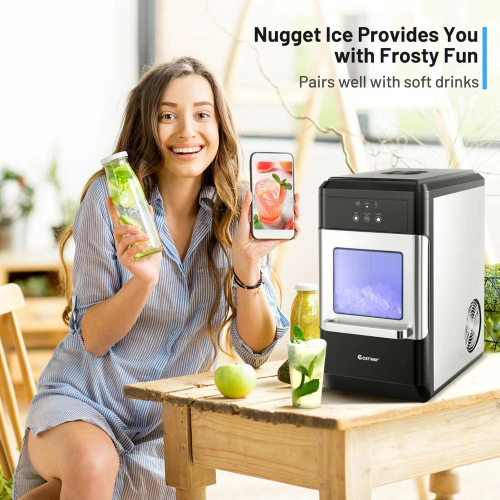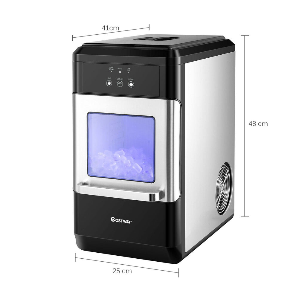 Colour: Black + white Material: Metal, PP Overall dimension: 25 cm x 41 cm x 48 cm (L x W x H) Net weight: 17 kg Refrigerant: R600a Voltage: 220-240 V/ 50HZ Ice storage capacity: 1.5 kg Water tank capacity: 3.7 L Ice capacity: 18 kg/ 24 h Package includes: 1 x Nugget Ice maker 1 x Ice scoop 1 x Instruction manual