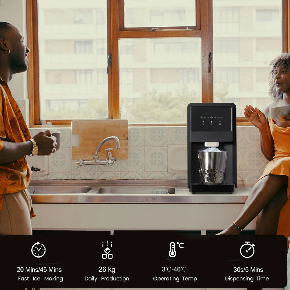 - High daily output: makes up to 26 kg of nugget ice per 24 hours so you rarely run out during a gathering.