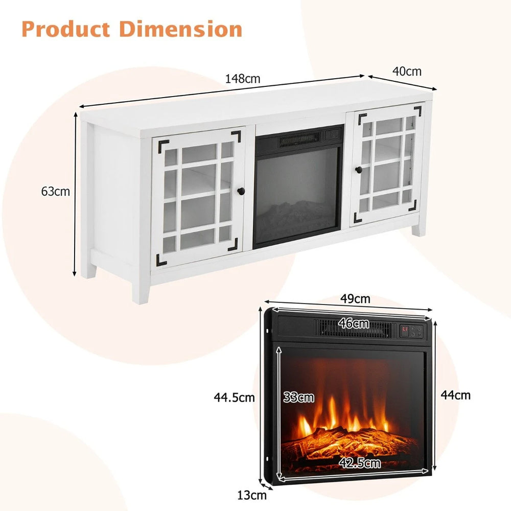 Colour: White/Black/Natural Material: MDF + Engineered Wood + Tempered Glass + Metal + Plastic Overall Dimension of TV Stand: 148 x 40 x 63 cm (L x W x H) Dimension of Electric Fireplace: 49 x 13 x 44.5 cm (W x D x H) Length of Power Cable: 1.8 m Total Net Weight: 40 kg Weight Capacity of Tabletop: 30 kg Rated Power: 1800-2000 W Voltage: 220-240 V Frequency: 50Hz Heat Output: 5000 BTU Heating Area: 37m2 Adjustable Flame Brightness: 3-level Adjustable Temperature: 17C- 27C Effective Control Distance of Remote Control: 8m Battery Required: 2 x AAA Batteries (Not Included) Package Includes: 1 x TV Stand 1 x Electric Fireplace 1 x Remote Control 1 x Instruction Manual