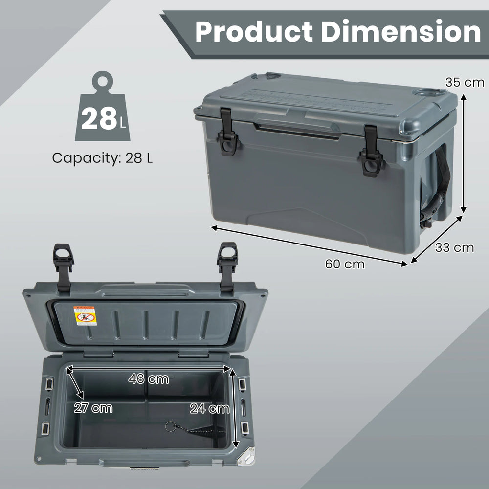 28L Rotomolded Cooler Insulated Portable Ice Chest-Dark Grey