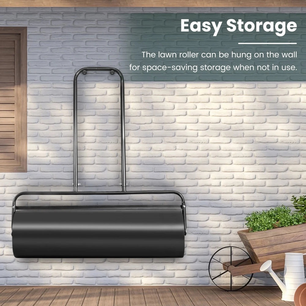 24 x 13 Inch Tow Lawn Roller Water Filled Metal Push Roller-Black