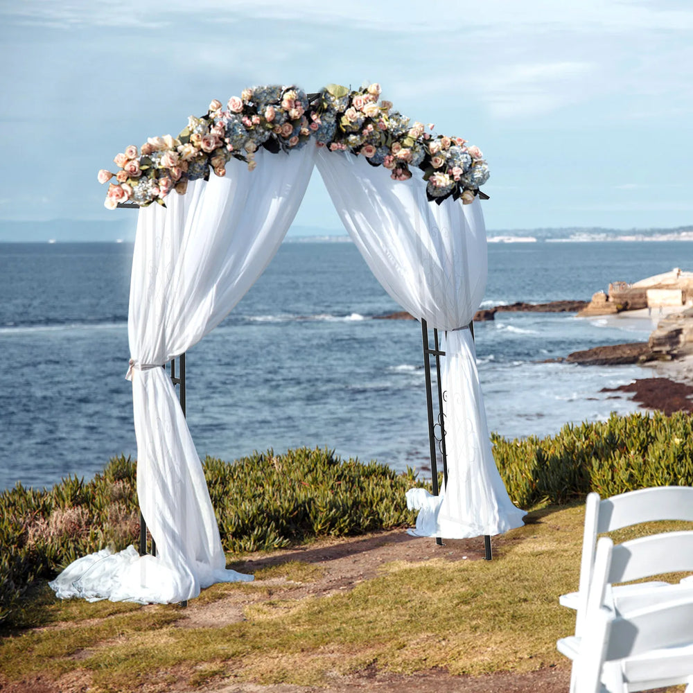 Colour: Black Material: Metal Overall Dimensions: 140 x 40 x 222 cm (L x W x H) Net Weight: 10 kg Package Includes: 1 x Metal Garden Arbor 4 x Metal Stake 1 x Instruction Manual