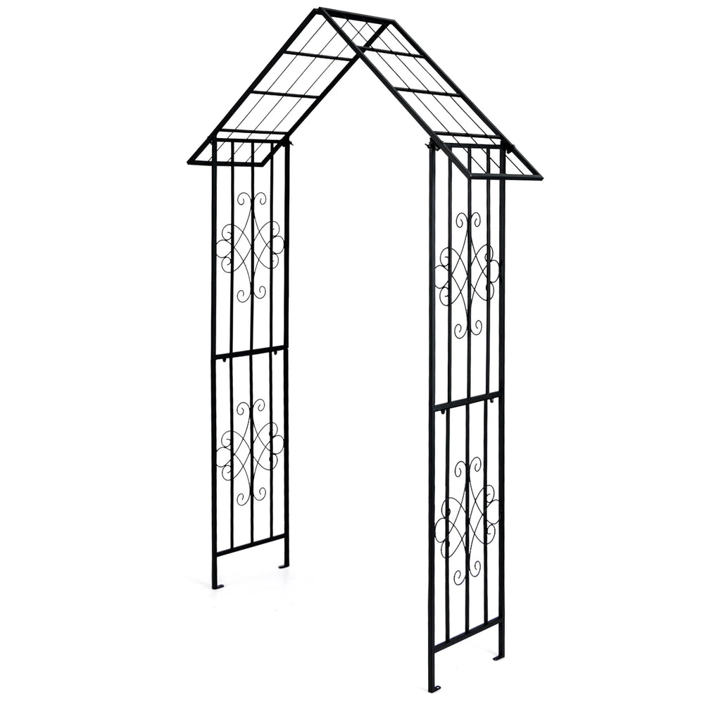 Roof-shaped Top Garden Arbor Garden Trellis Pergola with Side Crossbars-Black
