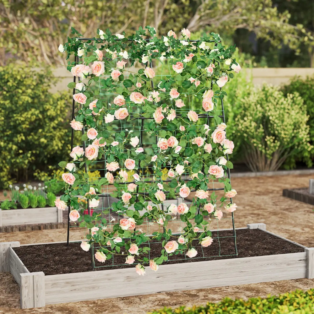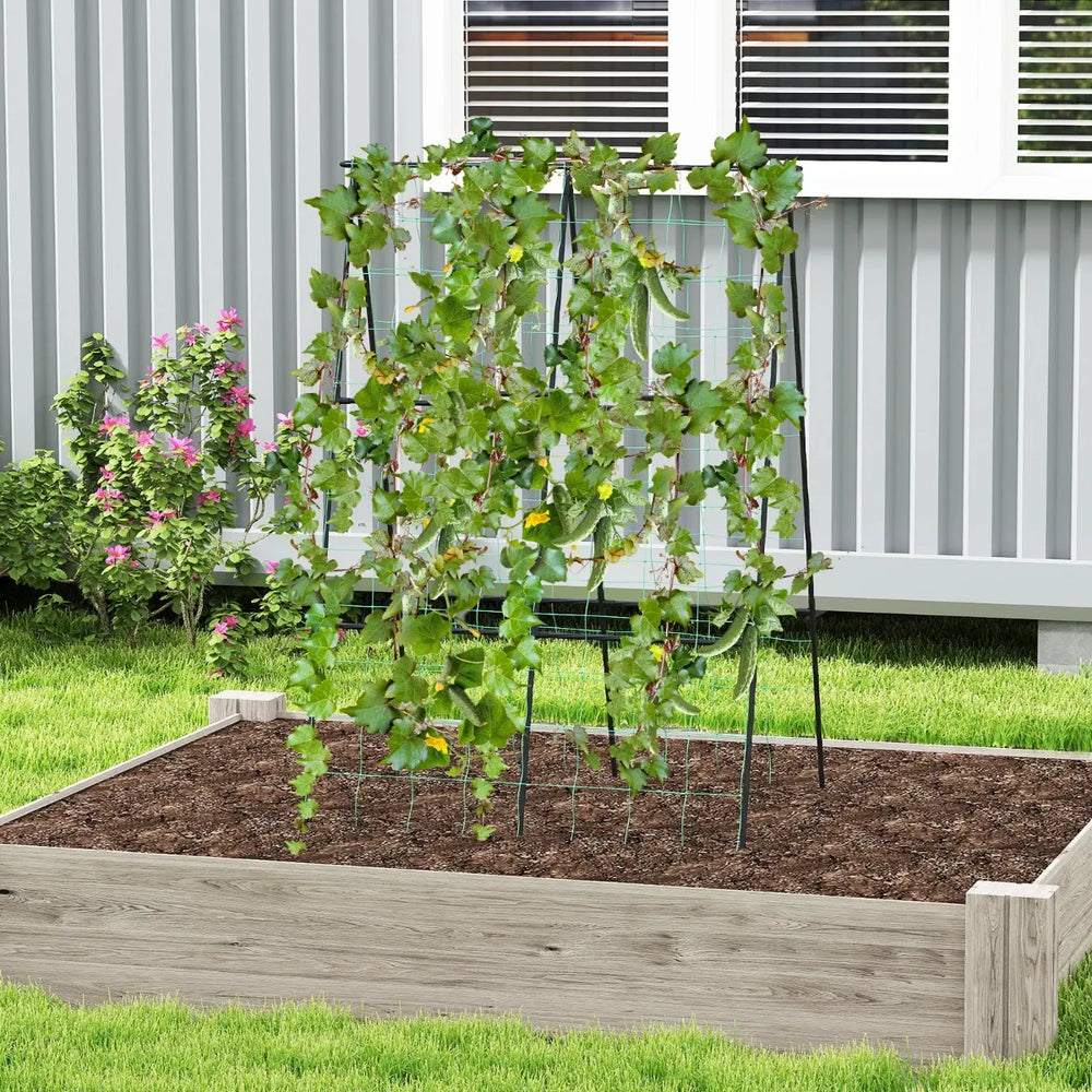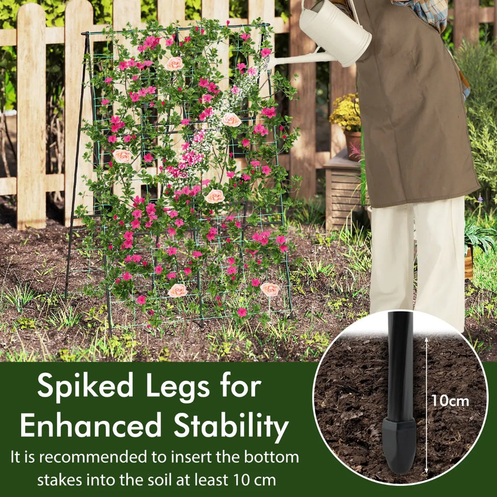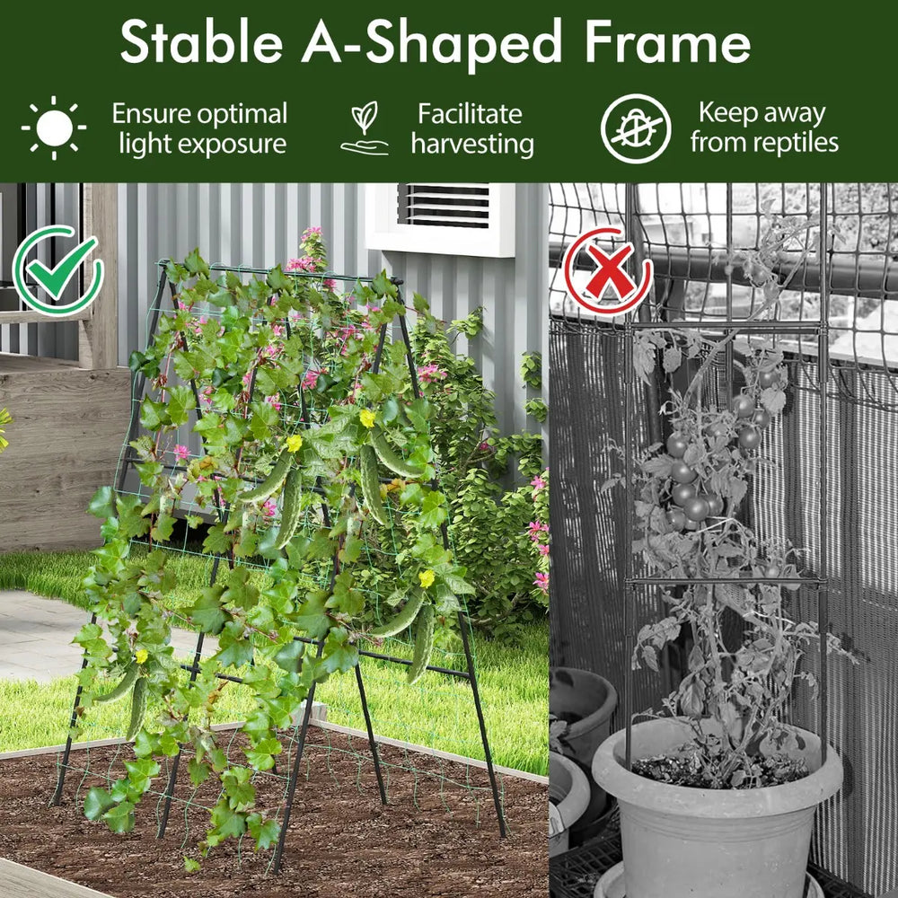 A-Frame Garden Trellis for Climbing Plants with Netting Vertical Support with Rustproof PE Coated Metal Posts