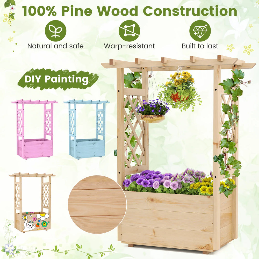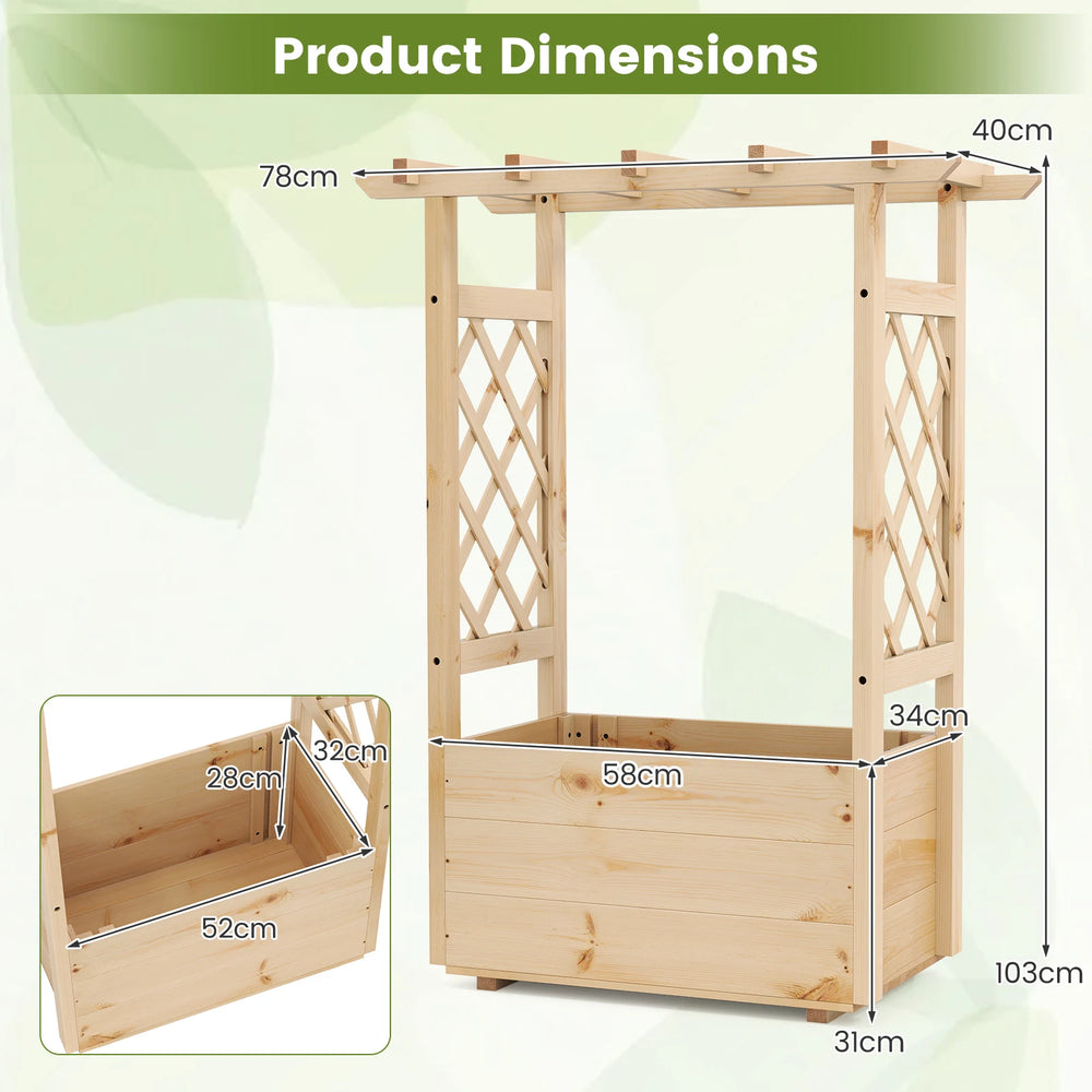 Raised Garden Bed with Lattice Trellises Hanging Roof Drainage-S