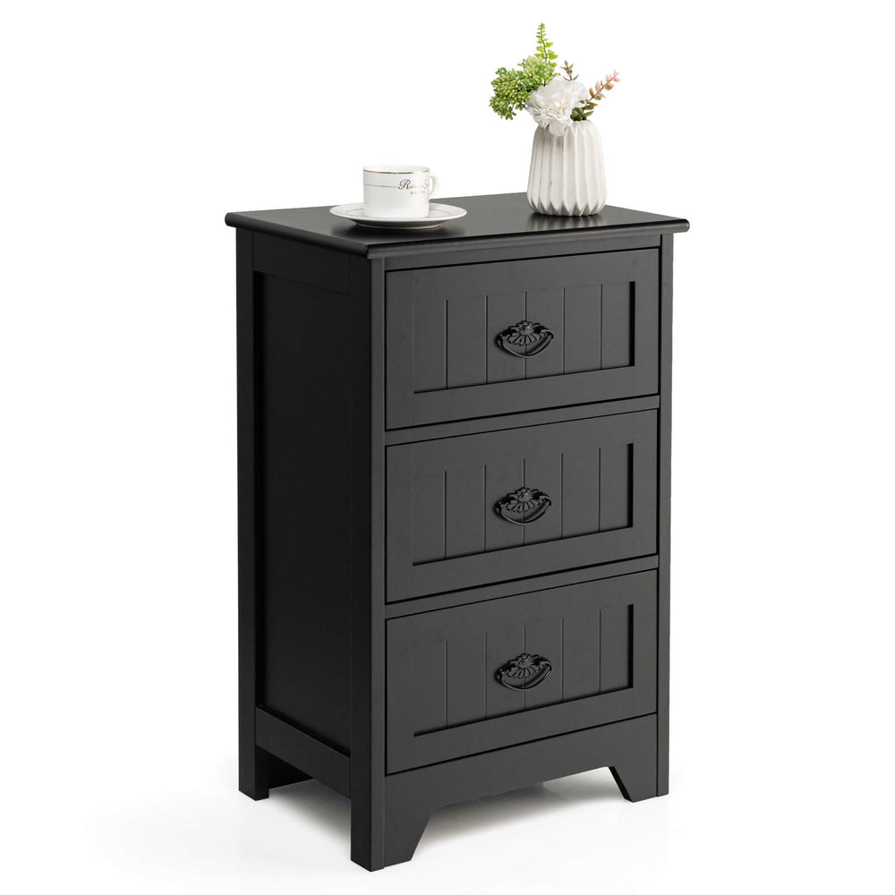 This vintage-style bedside table combines practical storage with a classic look. The unit has three pull-out drawers that conceal bedside essentials and private items, while a roomy tabletop gives space for a lamp, alarm clock or decorative pieces. Smooth drawer slides ensure quiet operation.
