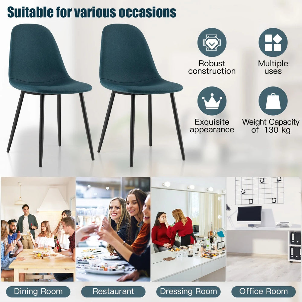 Dining Chairs Set of 2 with Black Metal Legs-Blue