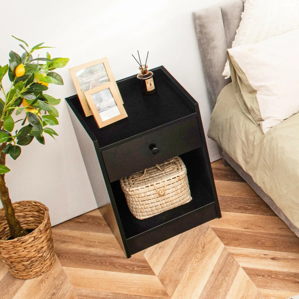 Set of 2 Nightstand with 1 Drawer and Storage Compartment