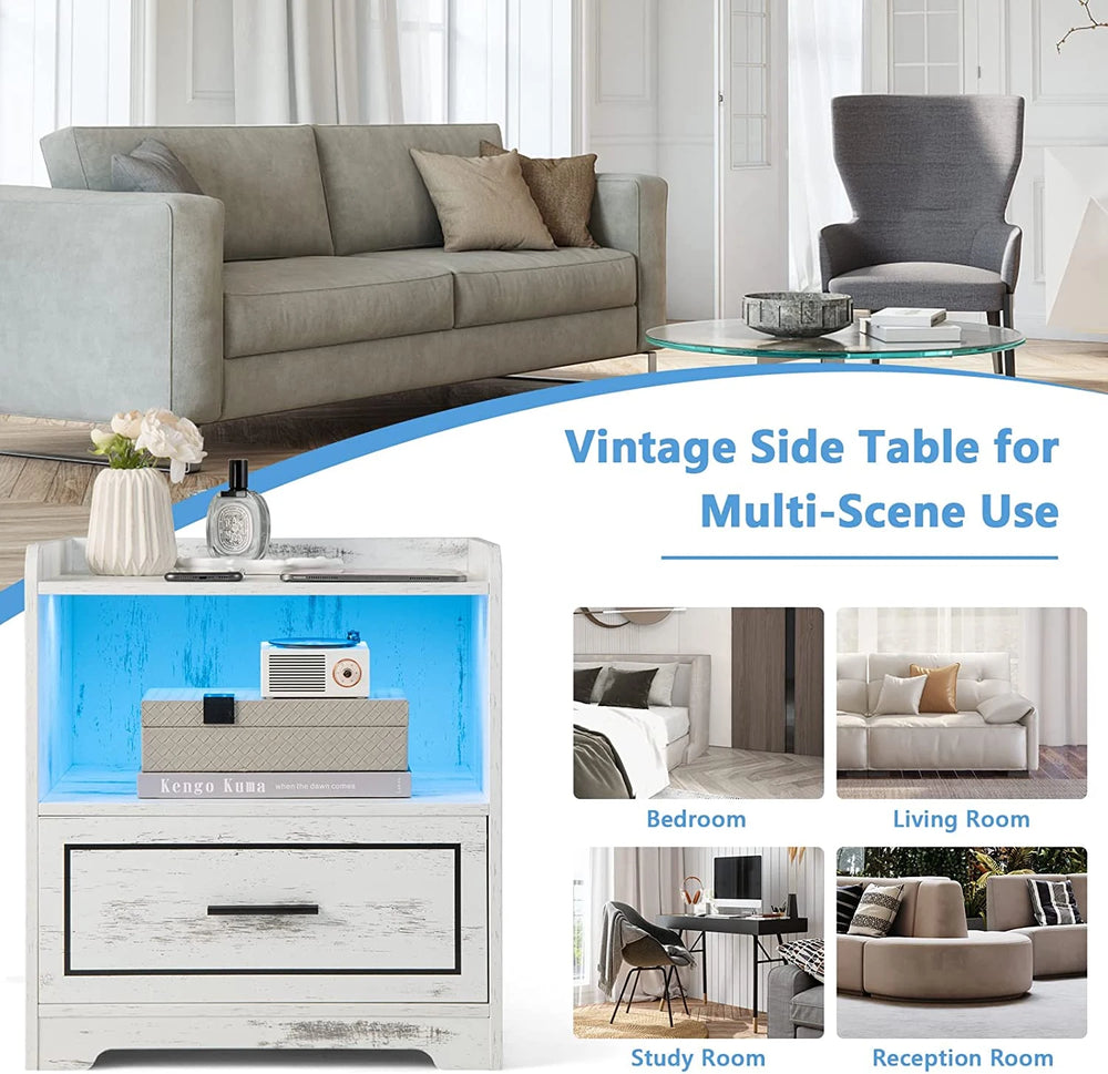 Smart LED Nightstand Sofa Side Table with USB Charging Station-White