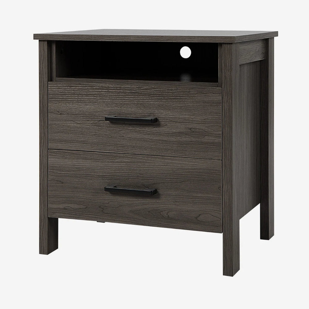 If you are looking for a functional and decorative piece of furniture for the living room or bedroom, this modern nightstand is a good choice! With an open compartment and 2 pull-out drawers, our nightstand is so generous in storage space that can accommodate books and other private items. In addition, you can also place picture frames and beautiful ornaments on the tabletop to decorate the room. What's more, the end table also boasts a sturdy construction. Its 4 stout legs provide reliable support and considerable weight capacity. Besides, the natural colour and elegant look add to the appeal of the nightstand. In all, you can use the unit as a coffee table, a side table or a nightstand. Bullet Point: Large Storage Space: This multifunctional nightstand comes with 2 drawers and an open compartment, offering adequate and classified storage space for you to put your glasses, books and other bedtime essentials. Besides, the large square tabletop is spacious enough for a table lamp or coffee cups, so that you can always keep necessities by your side. Sturdy & Durable Construction: The bedside table features 4 stout legs, which are fitted with non-slip foot pads to keep the side table from wobbling or tipping over. The overall stable construction ensures that the tabletop can support up to 50 kg, the compartment 15 kg, and each drawer 5 kg. Thoughtful Details: The open storage compartment is equipped with a round hole at the back that serves as cable management for the wires of the phones or pads. Thus, you can keep the tabletop from being cluttered. In addition, the 2 drawers are equipped with convenient handles and smooth slides, allowing you to pull them out with ease. Suitable for Different Scenarios: With clean lines and rustic wood grain, the modern sofa side table can go well with different furnishing styles in your living room, bedroom or study room. The end table is a decorative piece on its own, not to mention that the practical storage makes it serve as a nightstand, a side table or a coffee table. Easy Assembly: For your reference, the overall dimensions of the nightstand are 55 x 43 x 58.5 cm (L x W x H). And it is simply structured, requiring very little effort in assembly. All the accessories needed and instructions for assembly are included in the package, so you can quickly put it together by following instruction step by step. Features: The nightstand has an open shelf and 2 drawers for different storage needs The high quality engineered wood construction allows great load-bearing capacity Equipped with non-slip foot pads to improve stability and prevent scratches Drawers are equipped with handles and slides for easy pushing and pulling Open compartment with cable hole to accommodate charging cable Simple and modern appearance matches different room decors Features simple structure and smooth surface for easy assembly and cleaning Specifications: Colour: Walnut/Oak Material: Engineered Wood Overall Dimensions: 55 x 43 x 58.5 cm (L x W x H) Dimensions of Open Compartment: 45 x 39 x 9 cm (L x W x H) Interior Dimensions of Drawer: 39 x 34 x 10.5 cm (L x W x H) Weight Limit of Tabletop: 50 kg Weight Limit of Open Compartment: 15 kg Weight Limit of Each Drawer: 115 kg Net Weight: 18.6 kg Package Includes: 1 x Nightstand 1 x Instruction