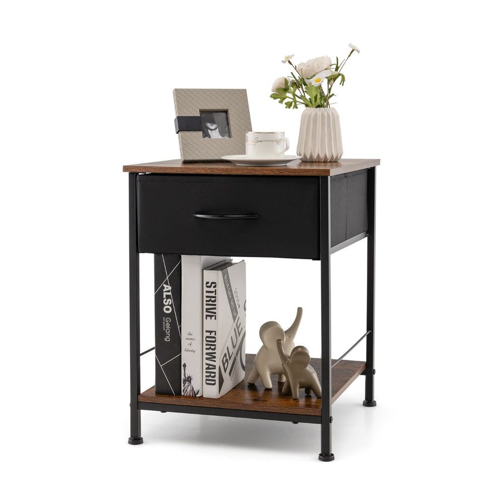 2 Tiers Wood Nightstand with Drawer for Bedroom and Living Room-Rustic Brown