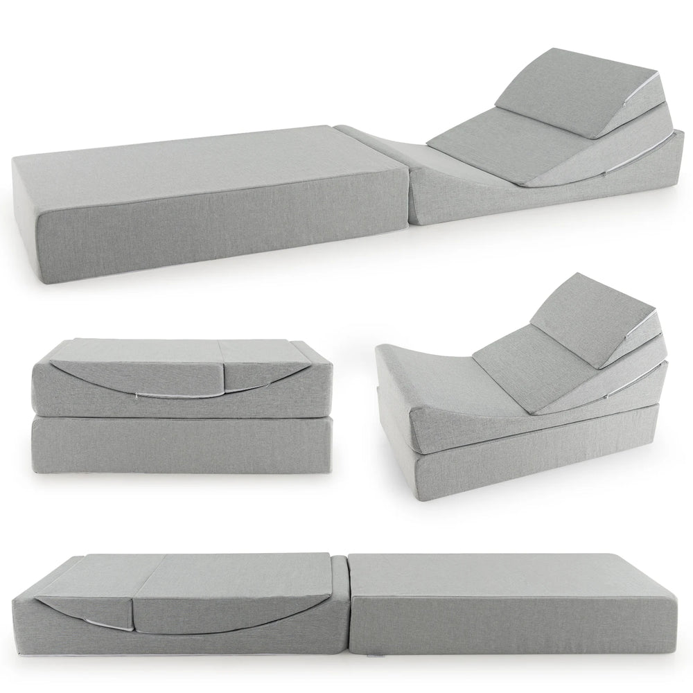 4-in-1 Convertible Folding Sofa Bed with High-Density Foam-Gray