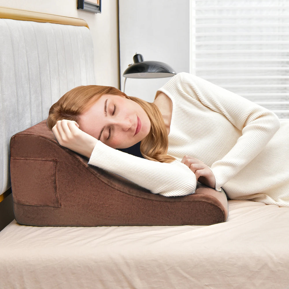 Bed Wedge Pillow with Tablet Pillow Stand and Side Pockets-Brown