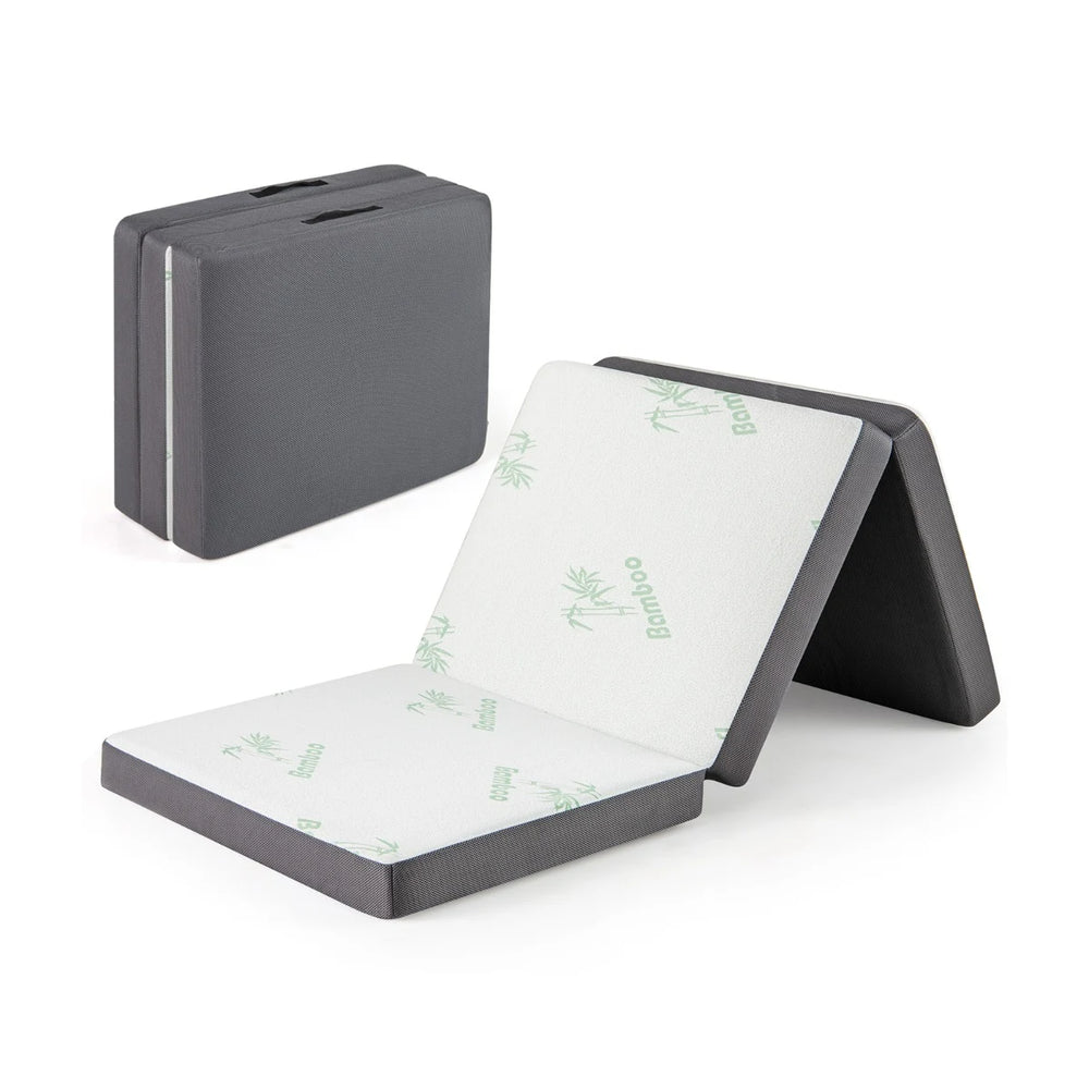 This tri-fold foam mattress gives a comfortable, portable sleeping surface that suits guests, camping trips, dorm rooms and RV travel. The cover is a 40% bamboo and 60% polyester blend that feels smooth to the touch and helps manage surface temperature, while a breathable mesh layer assists heat dissipation.