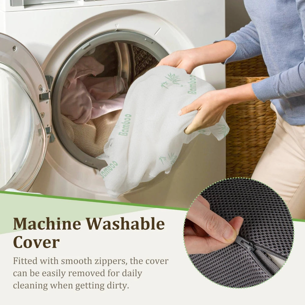- Breathable bamboo-blend cover: The 40% bamboo / 60% polyester surface plus mesh enhances airflow and helps regulate temperature while you sleep.