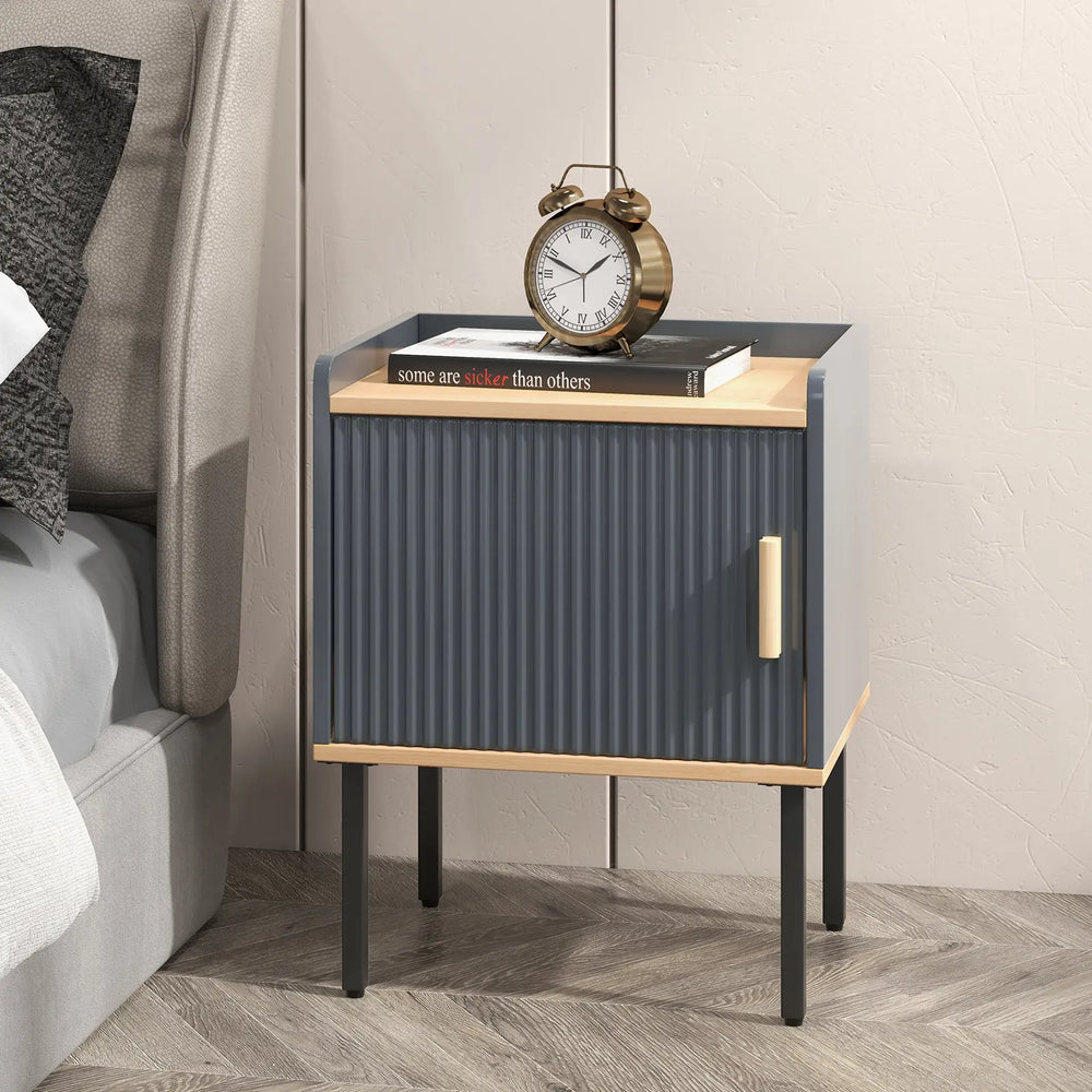 Nightstand Bedside End Table with Door Cabinet for Living Room Bedroom-Gray