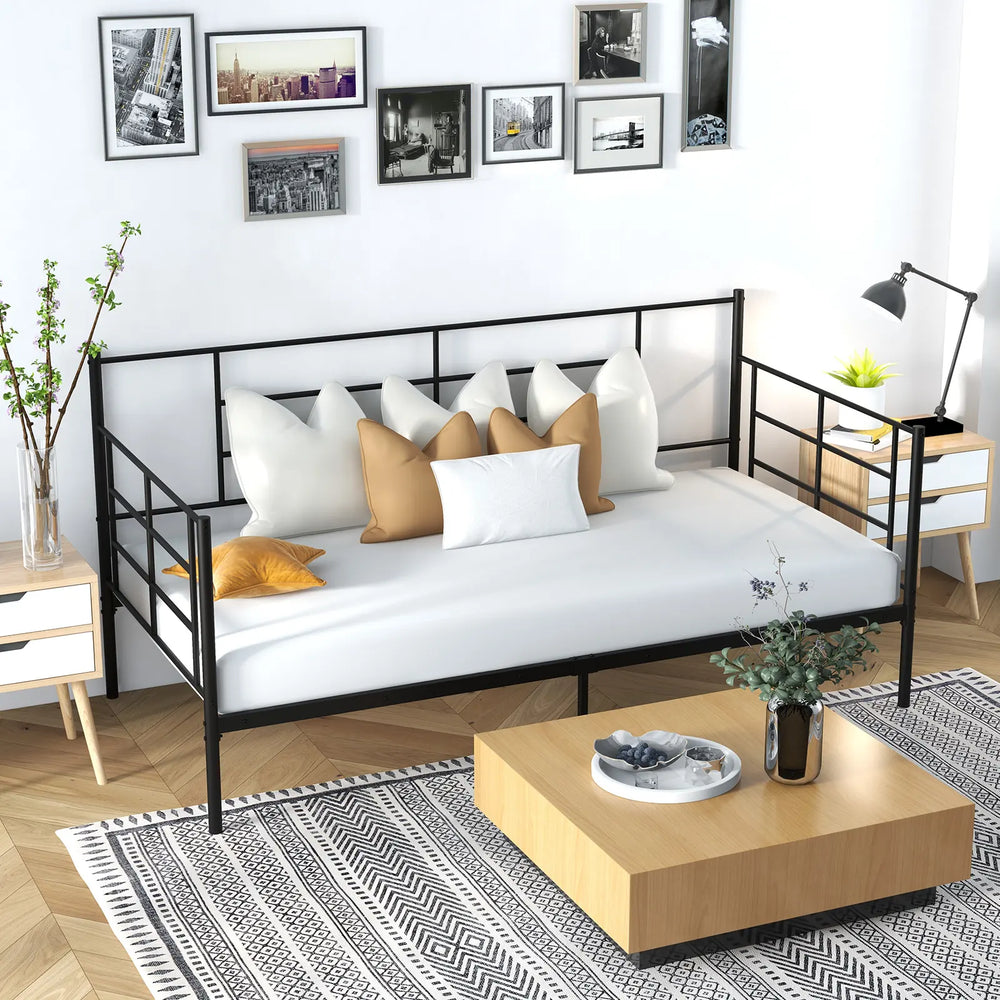 Colour: Black Material: Metal Overall Dimensions: 196 x 97 x 97 cm (L x W x H) Bed Platform from Floor: 28 cm Armrest Height: 77 cm Weight Capacity: 220 kg Net Weight: 16 kg Package Includes: 1 x Daybed 1 x Instruction Manual