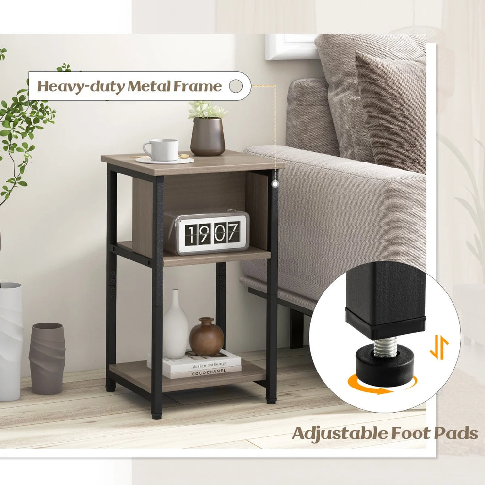 Narrow Sofa Side Table Set of 2 with Storage Shelf for Small Spaces-Grey