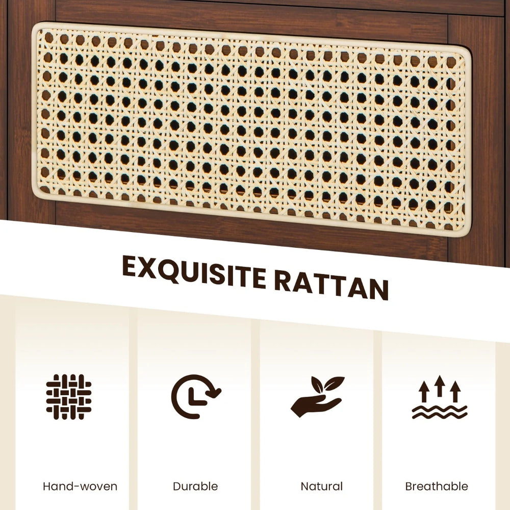 Bamboo Rattan Nightstand with Drawer and Solid Wood Legs-Brown