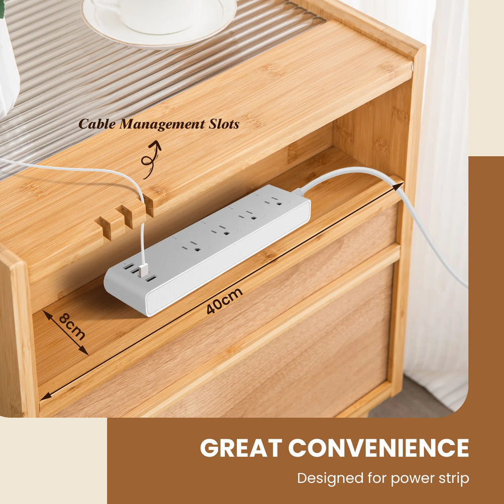 Bamboo Rattan Nightstand with Drawer and Solid Wood Legs-Natural