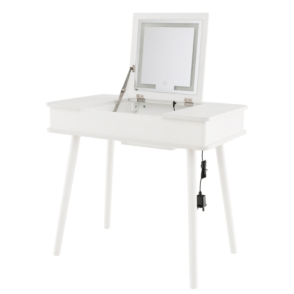Makeup Vanity Set with Flip-top Mirror and Cushioned Stool-White