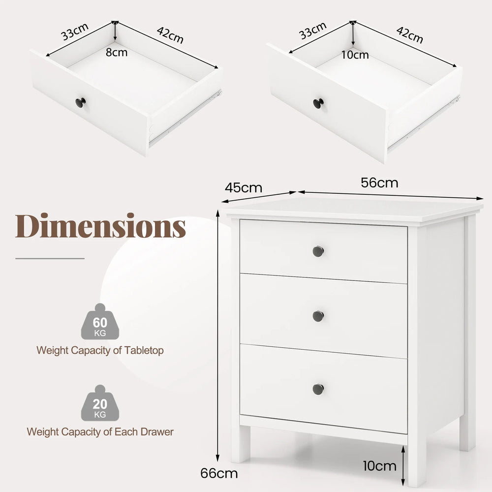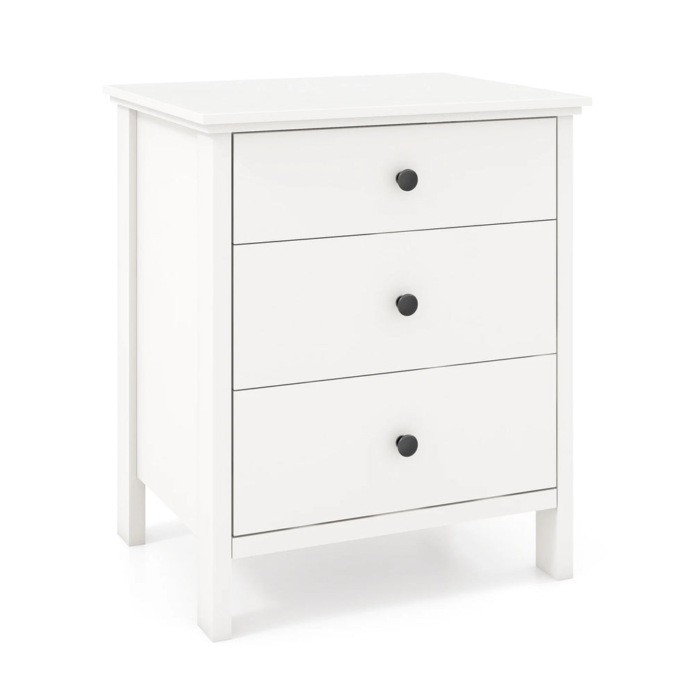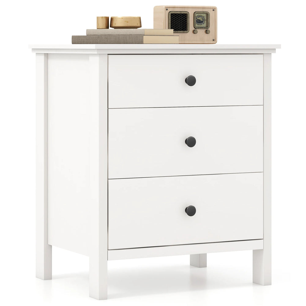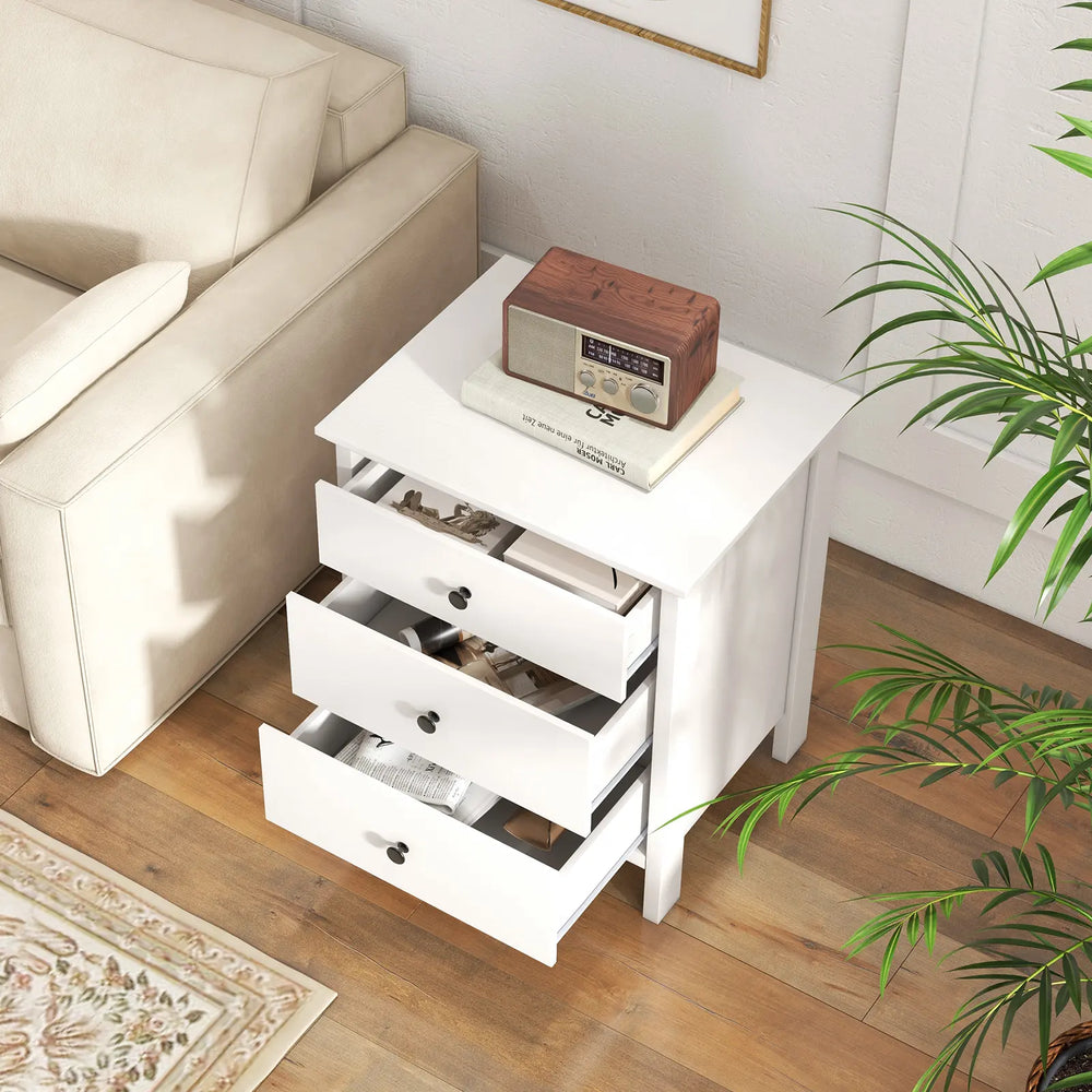 Nightstand with 3 Drawers Sofa Storage Chest Wooden Table for Phone and Coffee Multifunctional Furniture with 3 Shelves White