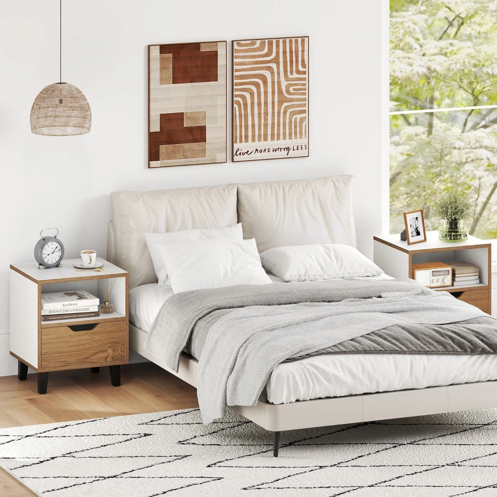 Mid Century Modern Bedside Table Nightstand with Drawer-White