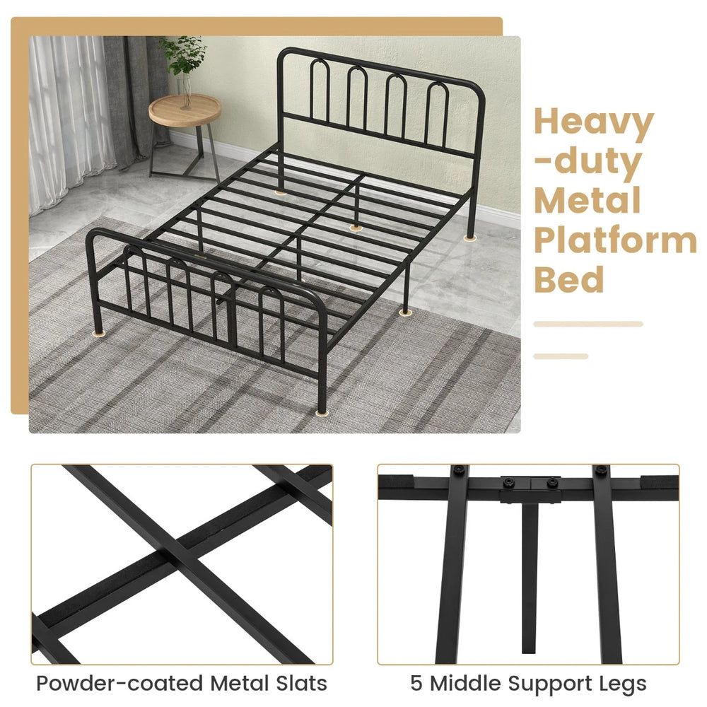 Double/King Size Metal Bed Frame with Headboard and Footboard-Double Size