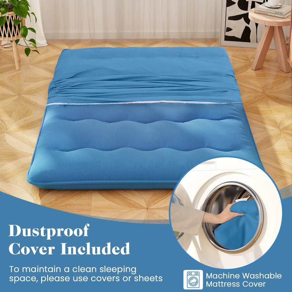 Japanese Floor Mattress with Washable Cover and Carry Bag-Blue-Double Size