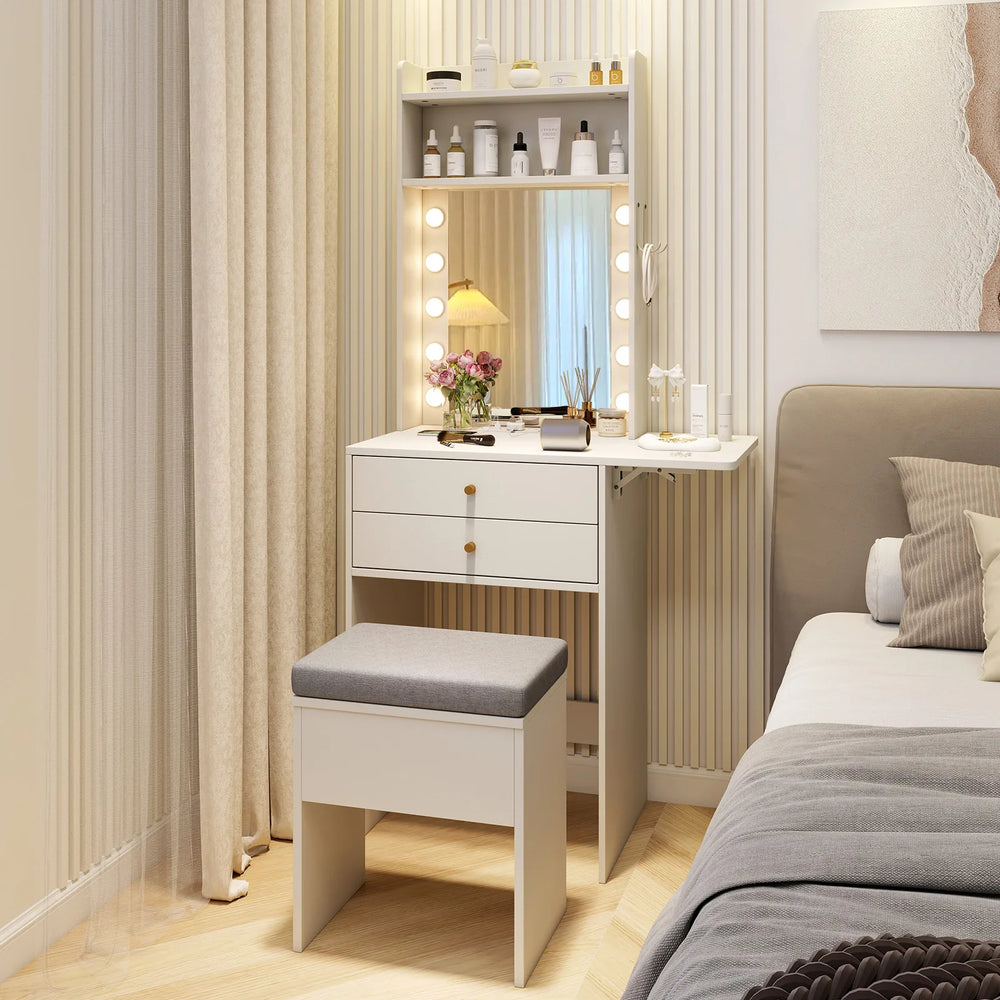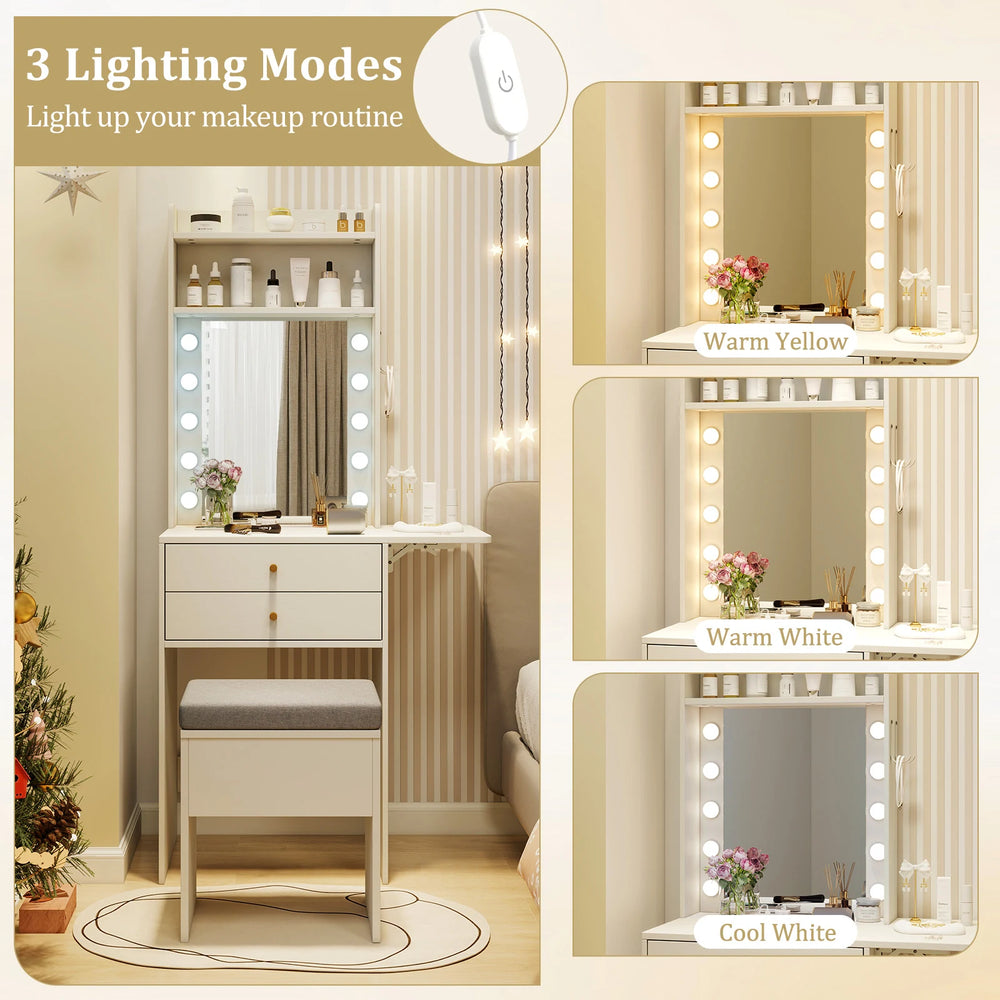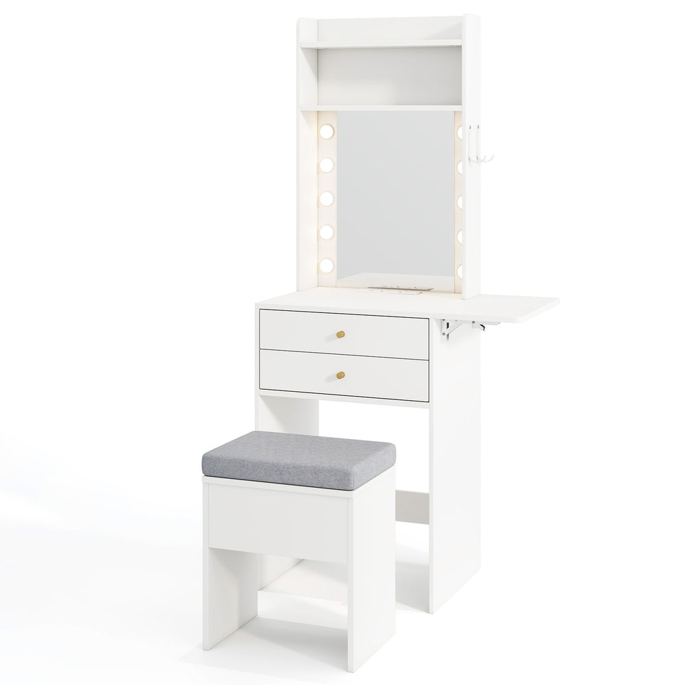 Small Makeup Vanity Desk with Mirror and Lights with Charging Station-White