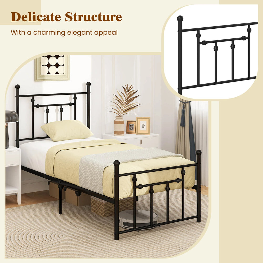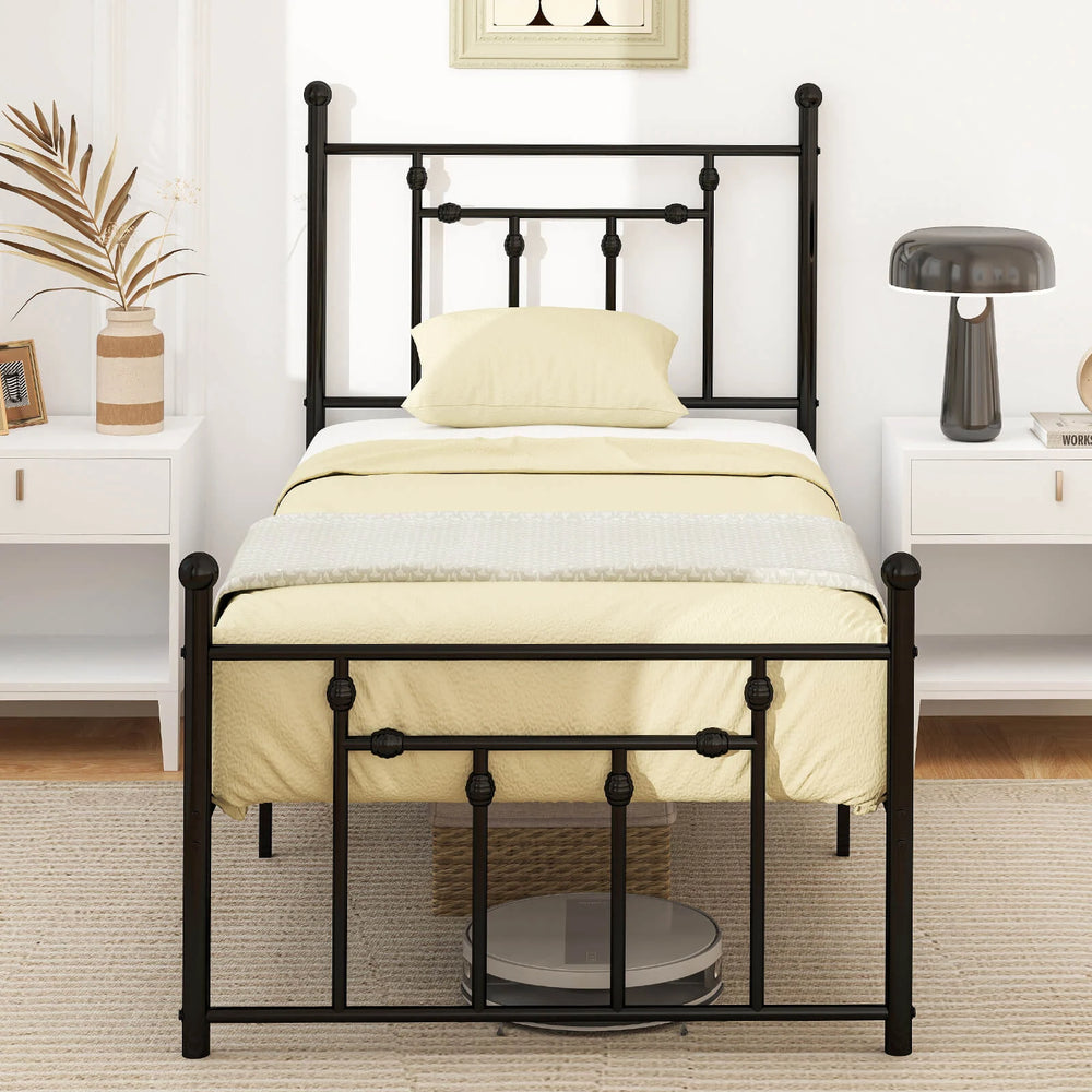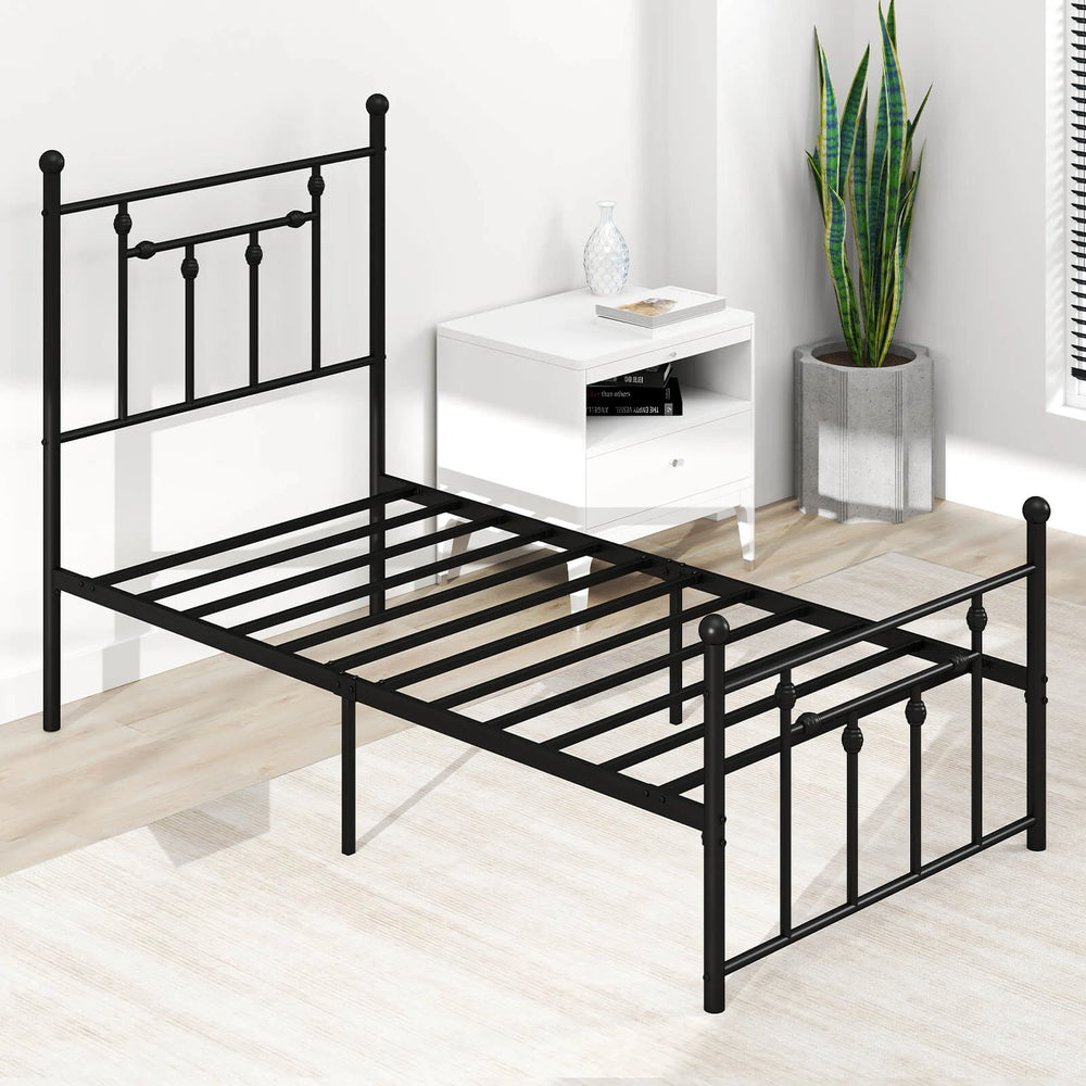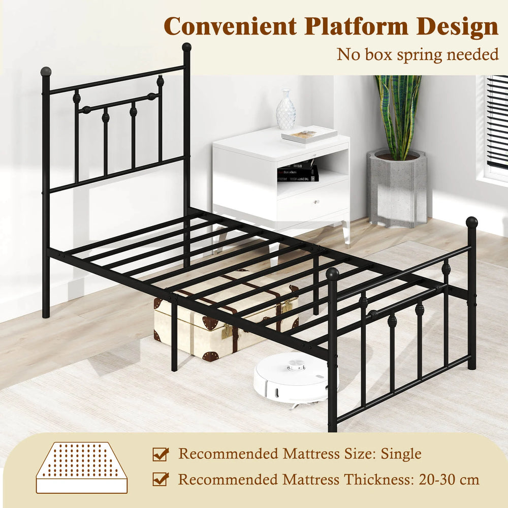 Single/Double/King Size Metal Bed Frame with Headboard-Black-Single Size