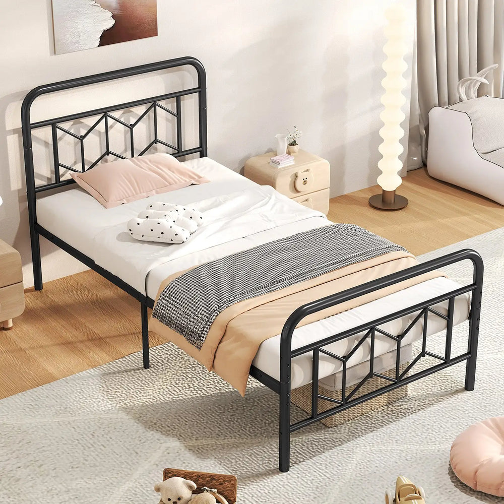 Single/Double/King Size Metal Bed Frame with High Headboard and Mute Bar-Black-Single Size