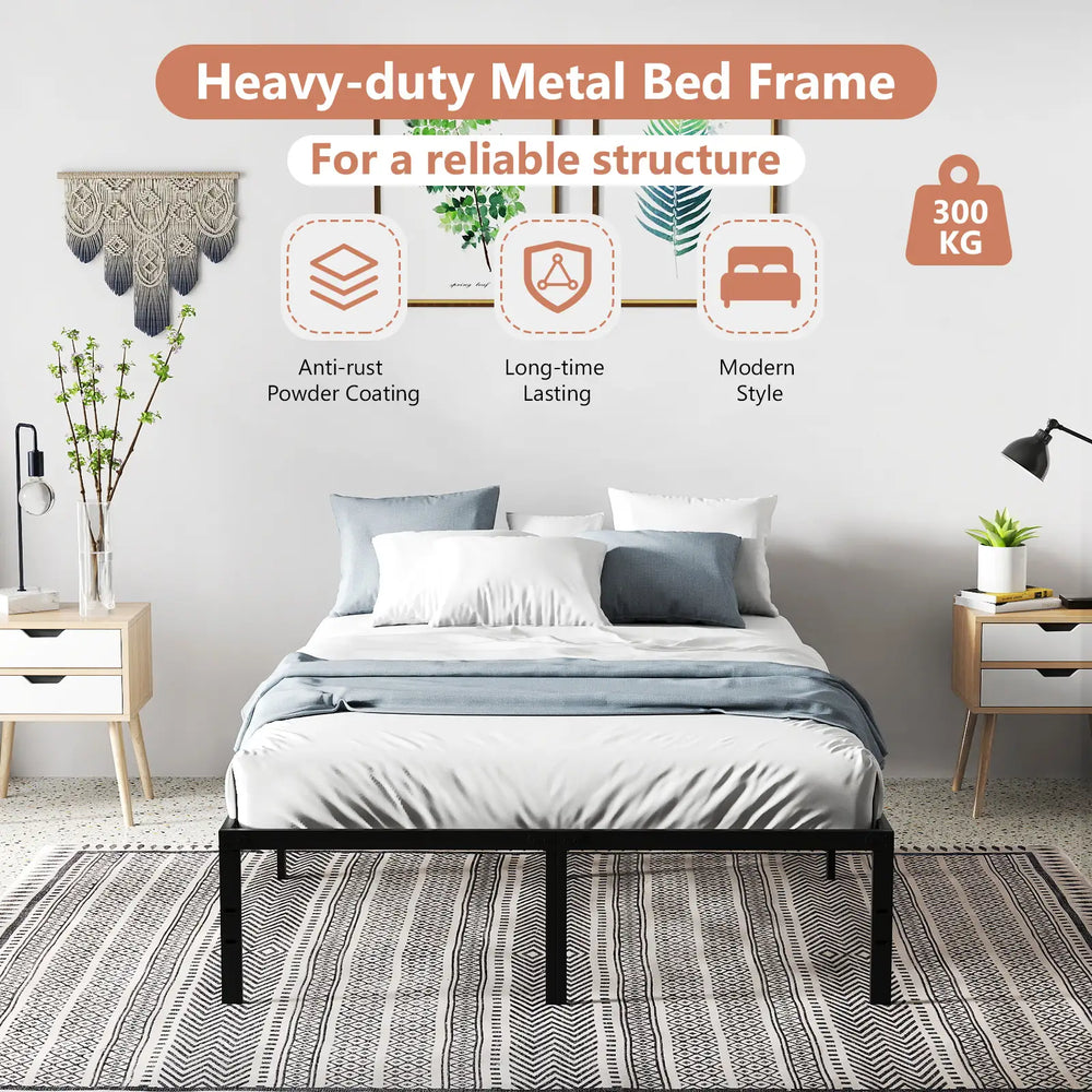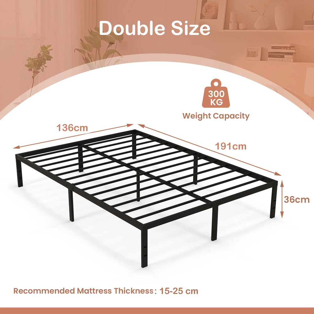 Colour: Black Material: Iron Overall Dimension: 201 x 151 x 36 cm/191 x 136 x 36 cm (L x W x H) Net Weight: 17/16 kg Weight Capacity: 300 kg Recommended Mattress Size (Not included): 200 x 150 x 15-25 cm/190 x 135 x 15-25 cm (L x W x Thickness) Package Includes: 1 x Bed Frame 1 x Instruction Manual