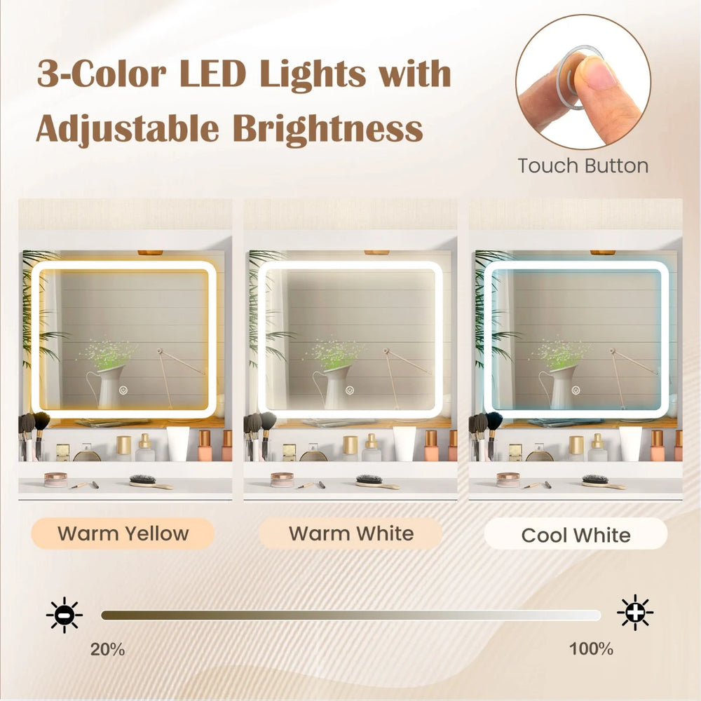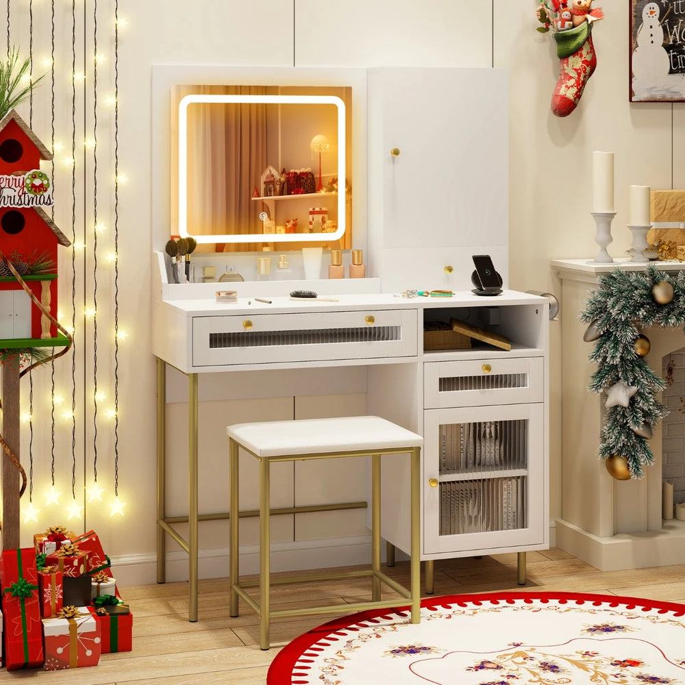 Vanity Set with 2 Fluted Glass Drawers and 1 Ordinary Drawer-White