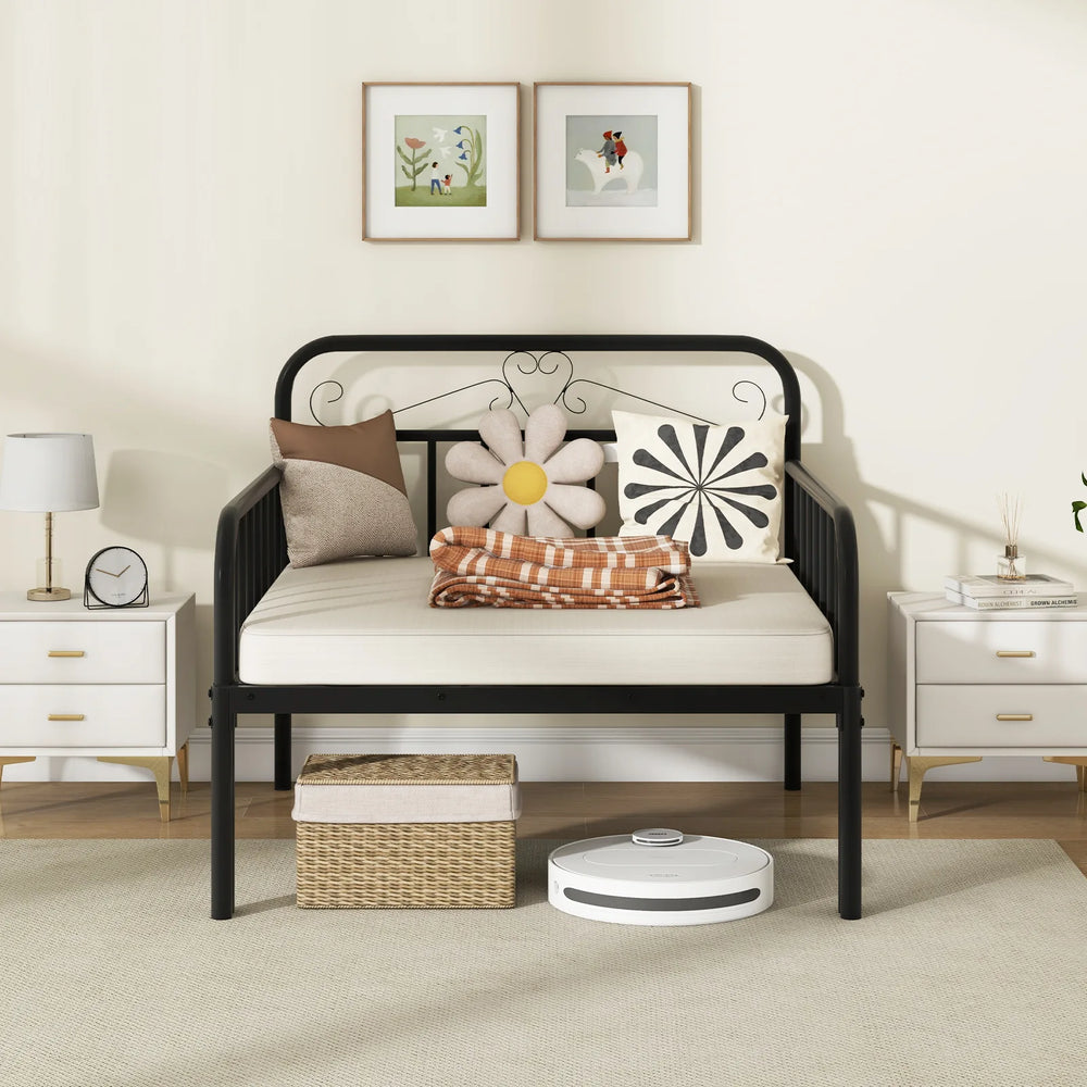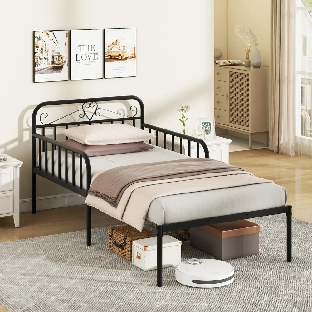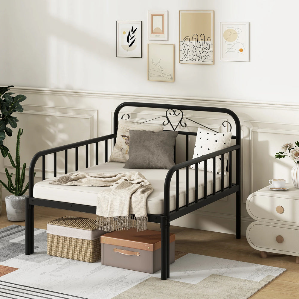 Colour: Black/WhiteMaterial: MetalOverall Dimensions of Daybed: 98.5 x 100 x 85 cm (L x W x H)Overall Dimensions of Extendable Bed: 194 x 98.5 x 35.5 cm (L x W x H)Height of Guardrails: 62 cmHeight of Under-bed Space: 31.5 cmNet Weight: 18.5 kgWeight Capacity: 220 kg