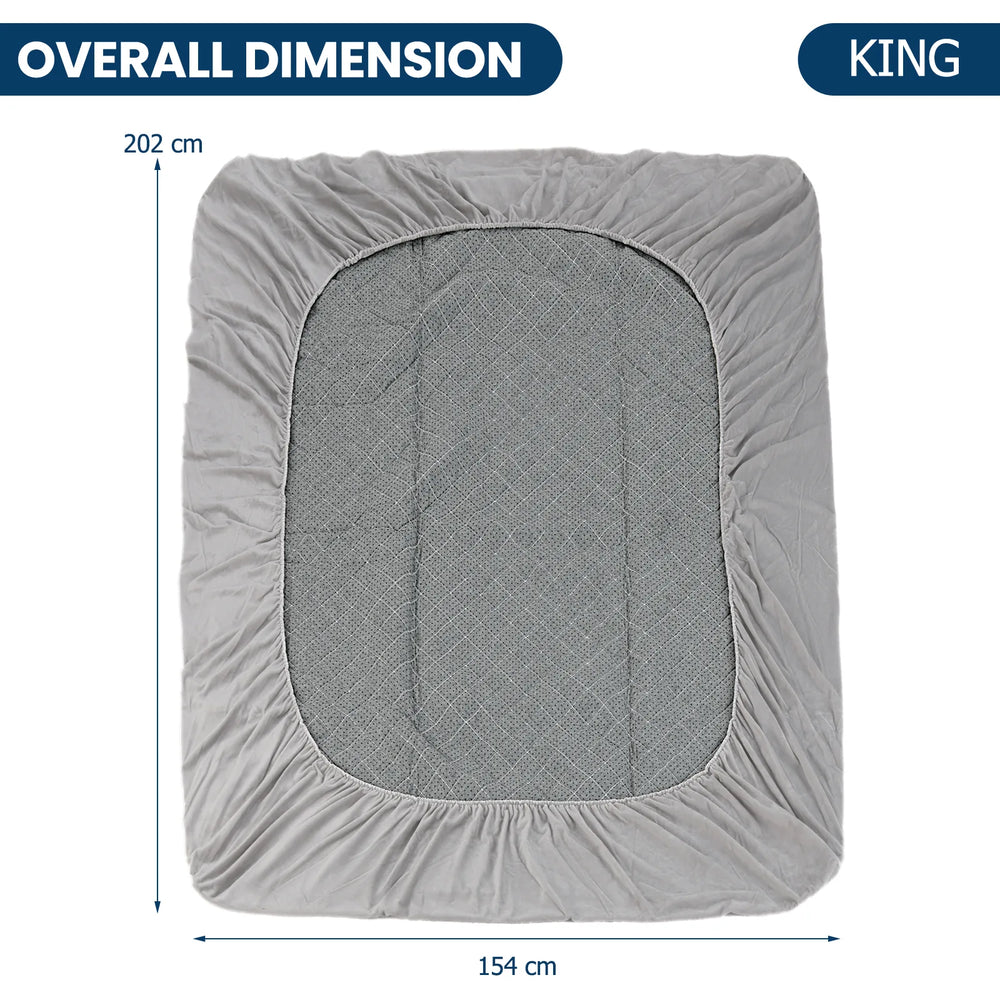 Colour: Grey Material: Polyester + Sponge King Overall Dimension: 202 x 184 (L x W x H) Net Weight: 2.3 kg Queen Overall Dimension: 202 x 154 (L x W x H) Net Weight: 2 kg Twin Overall Dimension: 192 x 94 (L x W x H) Net Weight: 1.3 kg Package Includes: 1 x Mattress Topper