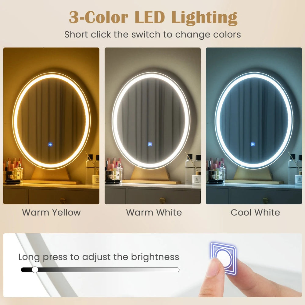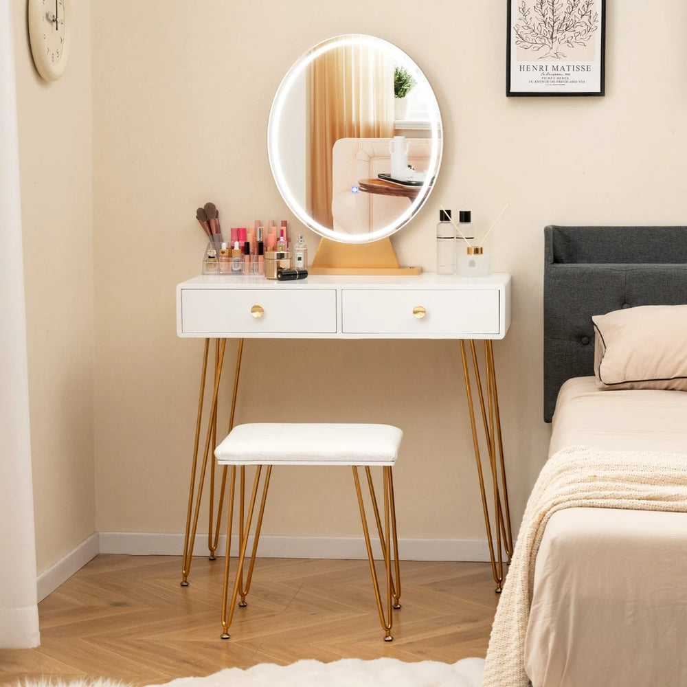 Vanity Set with LED Lighted Mirror and Soft Cushioned Stool for Bedroom-White